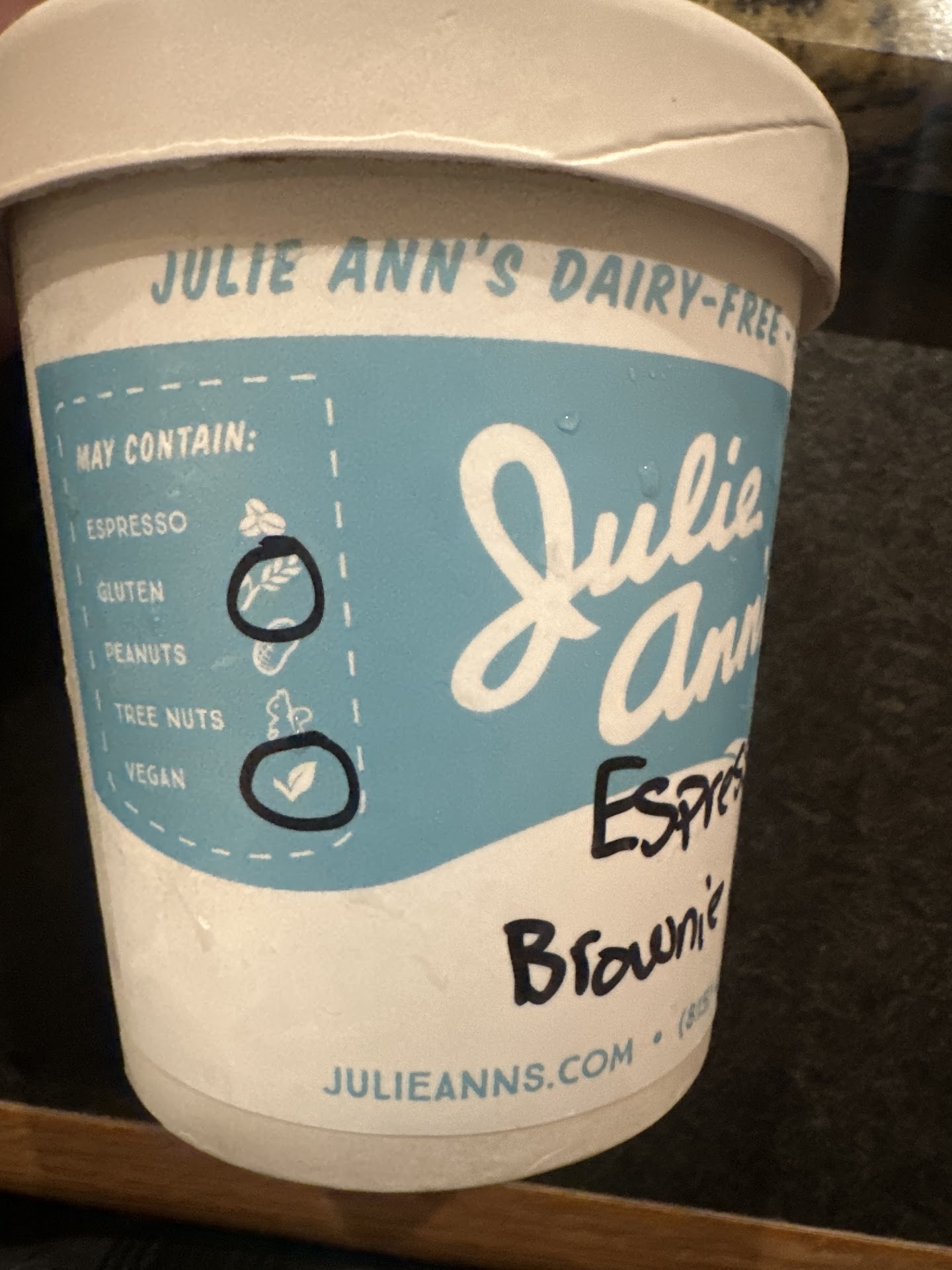 Ā Ā Ā Read moreHave been coming here for the last 5 years or so for their dairy free options. Have always been fairly good and not much to complain about. However, I went in looking at the dairy free pints, I saw some had been circled vegan. So I asked the cashier why the vegan labels were circled on some but not all, they explained stating some of the toppings arenāt vegan or dairy free which is why certain ones are not circled. But then that leads me to, if the toppings inside are not dairy free how could the whole ice cream be dairy free at that point?