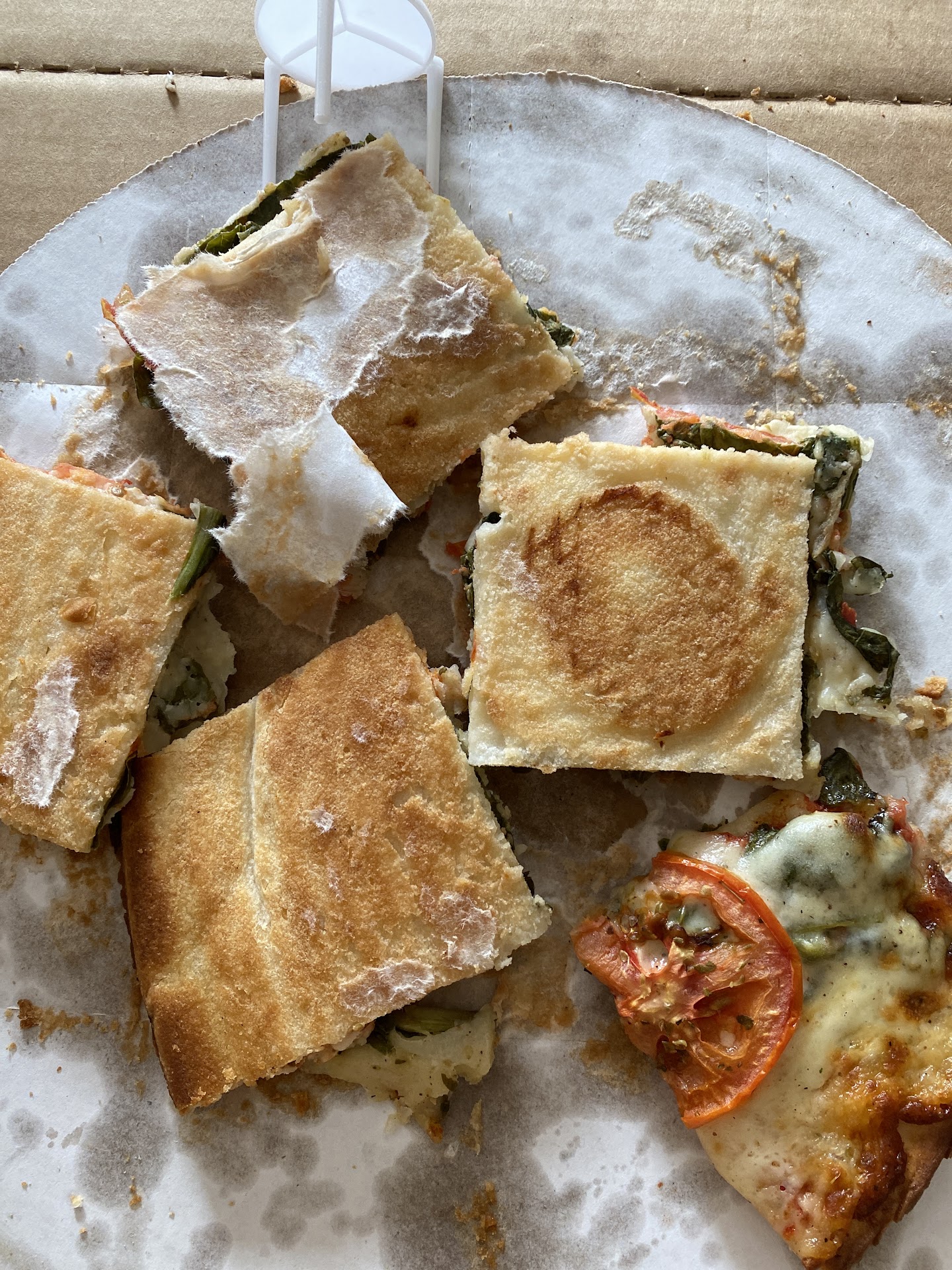 I had 2 1/2 slices of the large pizza. My wife had 1 1/2.