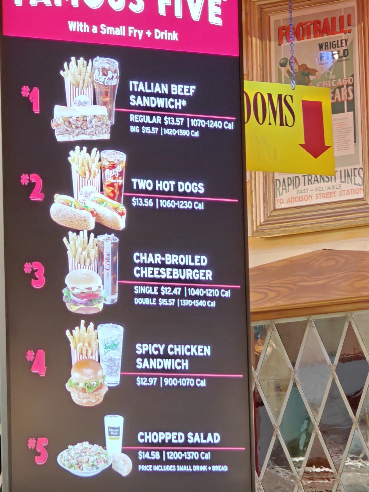 The Italian beef is horrible now. Very chewy, tough, fatty, and gristly. There are much better options out there now. It’s a shame, their beef used to be famous. Legendary.