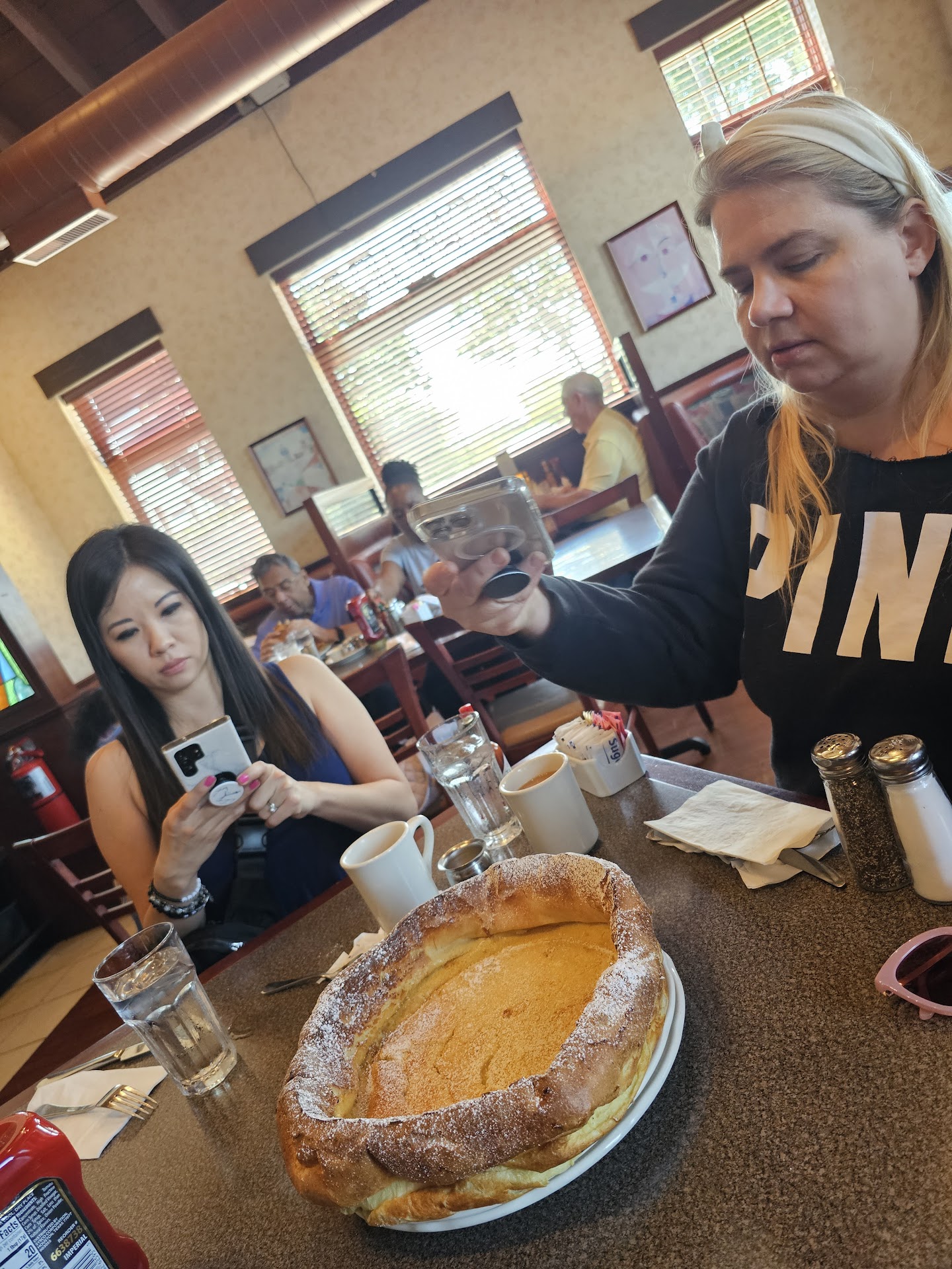 Somthing has changed. It is obvious that Richard is in California. When I want basted eggs This is Where I Come. The eggs were not based it like they usually were outside of the eggs were like a fried egg which I totally hate. I asked for crispy bacon, I've worked in the restaurant industry for 30 years, this bacon was cooked in a deep fryer. I could not eat it. Pancakes were not fluffy likely use they were they were very dense and seemed a bit overcooked but somehow the middle was not cooked? The corned beef hash was okay. But was not crispy and tasty like it normally was. Overall I was very disappointed I have been coming here for years but it seems that since I haven't been here in a while and Richard is in California that things and quality have gone down. This is my favorite place to go for pancakes and this was the only restaurant that could make basted eggs. What happened here?