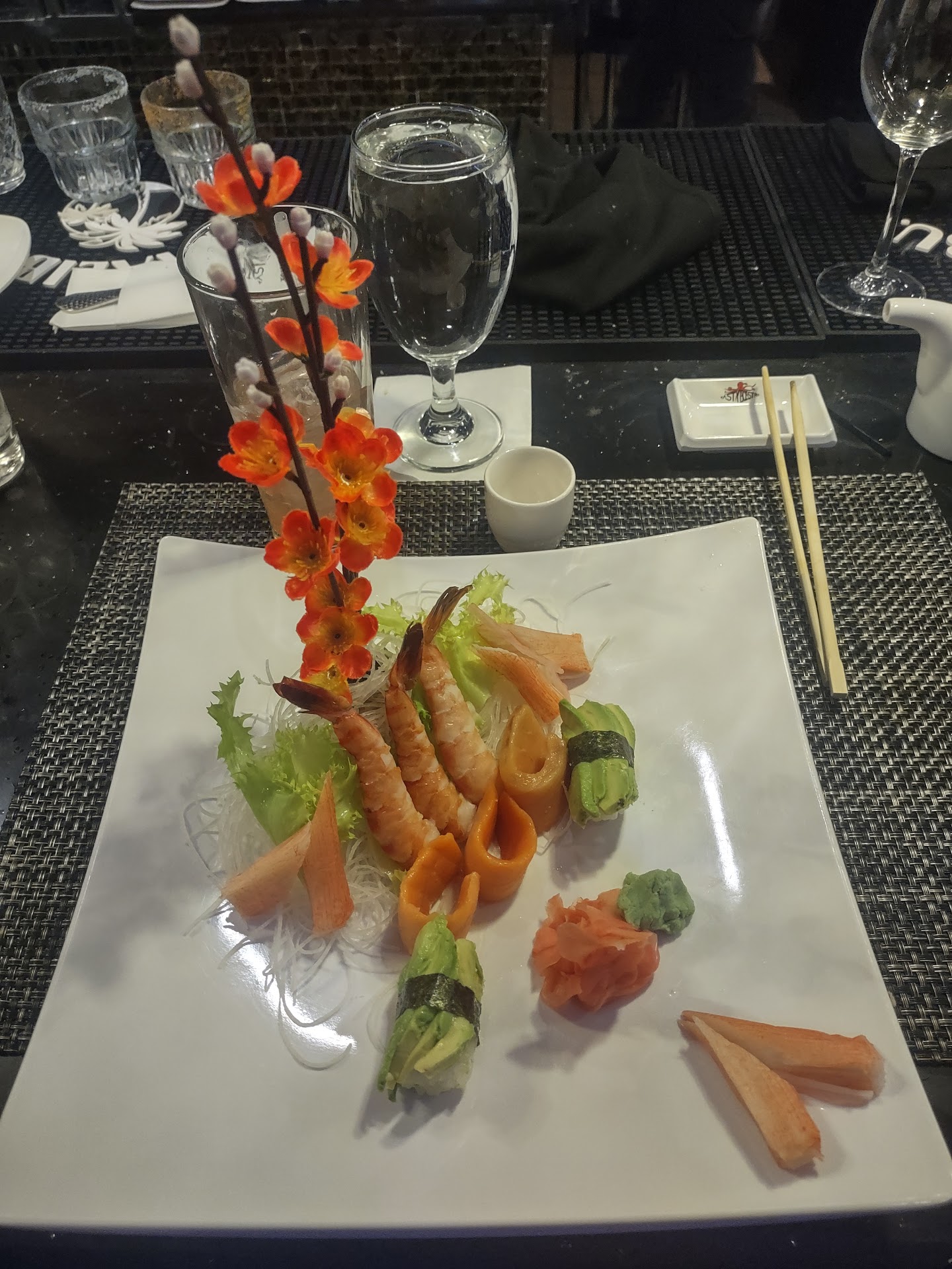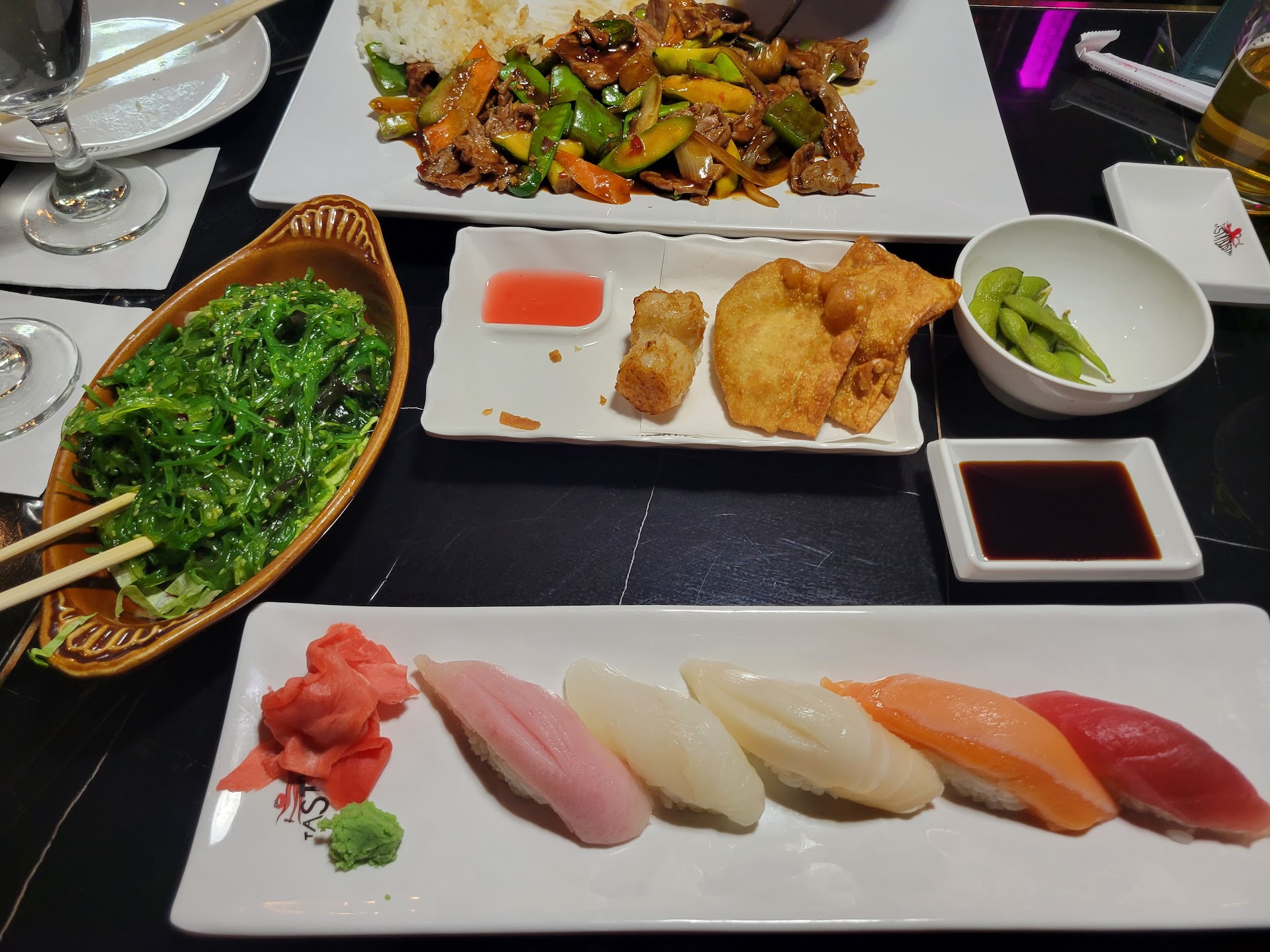 I have done several reviews for this place, ever since they opened. Multitudes of pictures taken and displayed in my reviews. It is a Tasty Bistro of Chinese, Japanese and Tia food. I have been to the establishment on multiple occasions, and am very much a regular patron. For starters... When you enter the place, look to your left upon entering. The water fall feature is very very nice. Moving further in... Your greeted and seated. The decor is very eye catching and unique upon walking in to the place. Little history: They are from out of Las Vegas, and it shows. The lighting in the place is subtle, very cool, inviting and relaxing. It's a little piece of Vegas in Crystal Lake. Now, the food... (Drinks) my recommendations... Oriental Dragon, Midori Colada. I'm working down the list as I go there... (Salads) Avocado -or- Cucumber 👍. (Soups) Miso, Egg Drop or Hot and Sour. (Main Meals) anything I've tried on the extensively huge main menu, has been awesome and great. To many to list on here. However, one of my main reasons for returning... is the SUSHI or SASHIMI. It's All-You-Can-Eat, and it's wonderful. I go after rolls, but they carry some special ones as well, that are worth checking out. And yes, your meal is going to change colors while dining... The atmosphere is great for a romantic dining experience. The staff is very attentive, friendly and humorous as well. It's a great add-on to the Crystal Lake area, and it's very different and unique than your usual dining experience. The normal (not lunch special) menu is huge in choices to pick from. I can't rant and rave enough about the place. However, you got to be a sushi, or oriental food lover to truly enjoy the experience. Awesome job guys! See ya again soon. Stop in, and try them out. I think you'll figure out, why I go there so much. It's that good... And cool. A+ and the reviews...