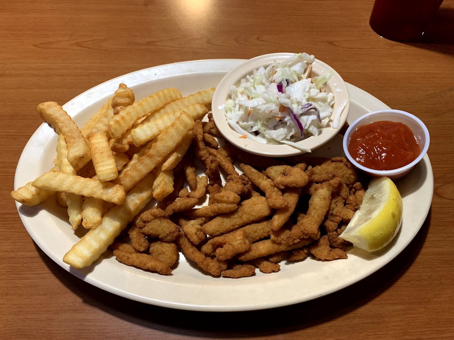 Read moreThis place came recommended by a friend. Sorry we went this day. We decided to sit a the bar for food and drinks. Big mistake! While the " tattoo girl" behind the bar greeted us - she NEVER had a smile, almost like she wanted to be somewhere else other than doing her job, which is serving customers. I passed this off as being busy at first but kept watching everything. We order 2 dozen oysters on the half shell. My girlfriend got her's first while I waited. And waited. And waited some more. She was finished with her appetizer and waited for me to get mine - almost 10 more minutes - before I got mine. I was getting irritated as I saw there were not one but two other orders of oysters waiting on the server's window yet the "tattoo girl" ignored this and kept pouring others drinks while I continued to wait. And wait. And wait some more. Finally I got served my oysters. My g/f then ate her last bite of her's to be courteous to me while I started mine. Should NOT have happened! We had chosen the house salad. It was 'bag salad'. They don't even cut up their own salad! Slap on a pre-portion of salad dressing and a few croutons ... nothing special, same thing one can dish out at home (which when eating out you expect more than what you can do at home.) We ordered the seafood platters and inquired about the fish - talapia. Wanted grouper. The "tattoo girl" advised such was $3 more. We eagerly agreed. Another mistake. Since the menu stated "unless specified all seafood is fried." We like fried seafood so should not be an issue. Wrong again! The shrimp were typical frozen variety that you get in your supermarket freezer case. Same for clam strips. The grouper? Over cooked and dry! Bill came to $80 for the 2 of us. Way overpriced for lousy service and mediocre food. We paid the bill but stopped at the hostess desk on the way out and asked for the manager to complain. We were shocked, SHOCKED ... to learn there IS NO MANAGER ON DUTY this evening. No wonder the service sucks -- they work totally...