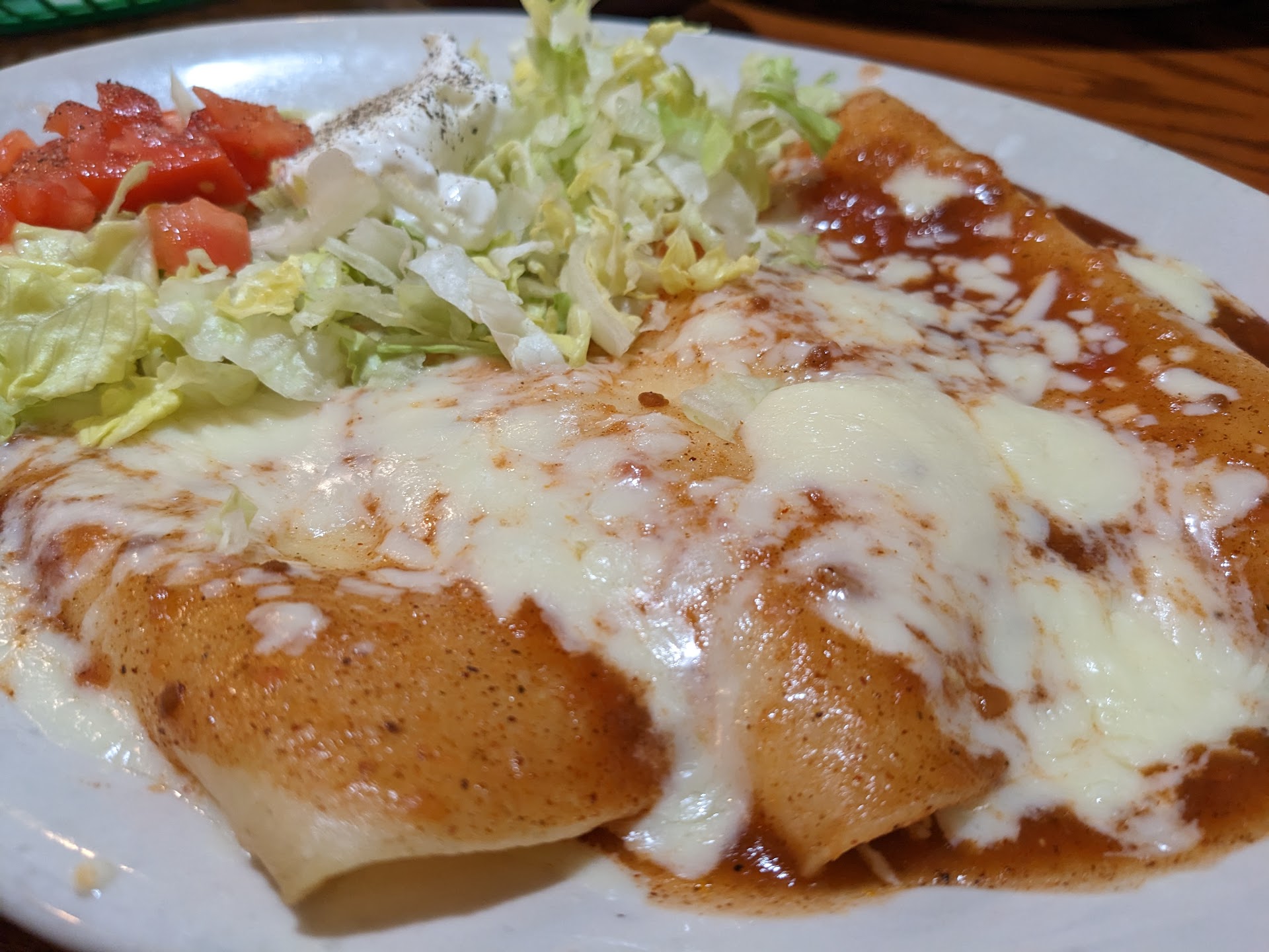 Read moreI would have a hard time finding something bad to say about the food or the one guy who was serving the entire restaurant. I went on Thursday night which coincidentally turned out to be enchilada night, exactly what I was planning to order. I tried to order two enchiladas, one with chicken and cheese and the other with cheese and beans. Somehow it came back as just a cheese enchilada and a chicken enchilada. No big deal. They were both very good. They don't have draft beer at the restaurant. I was really hoping I could get one of the standard Mexican beers on tap. When I got there, the place only had a handful of tables being used. About the time I left, a huge group of mostly young men came in and the restaurant turned into more of a frat party than a restaurant. The prices at this restaurant are very good. Not at all expensive. I believe they give you a discount if you pay cash too. I will definitely go there again. I'm not sure if I would eat there, but it certainly is a good place for takeout. The guy who was waiting all the tables deserves credit too, for handling all those people by himself pretty much. Every now and then the cook would come out but mostly the main guy was on his own. Nice guy. Good place. Just be prepared...