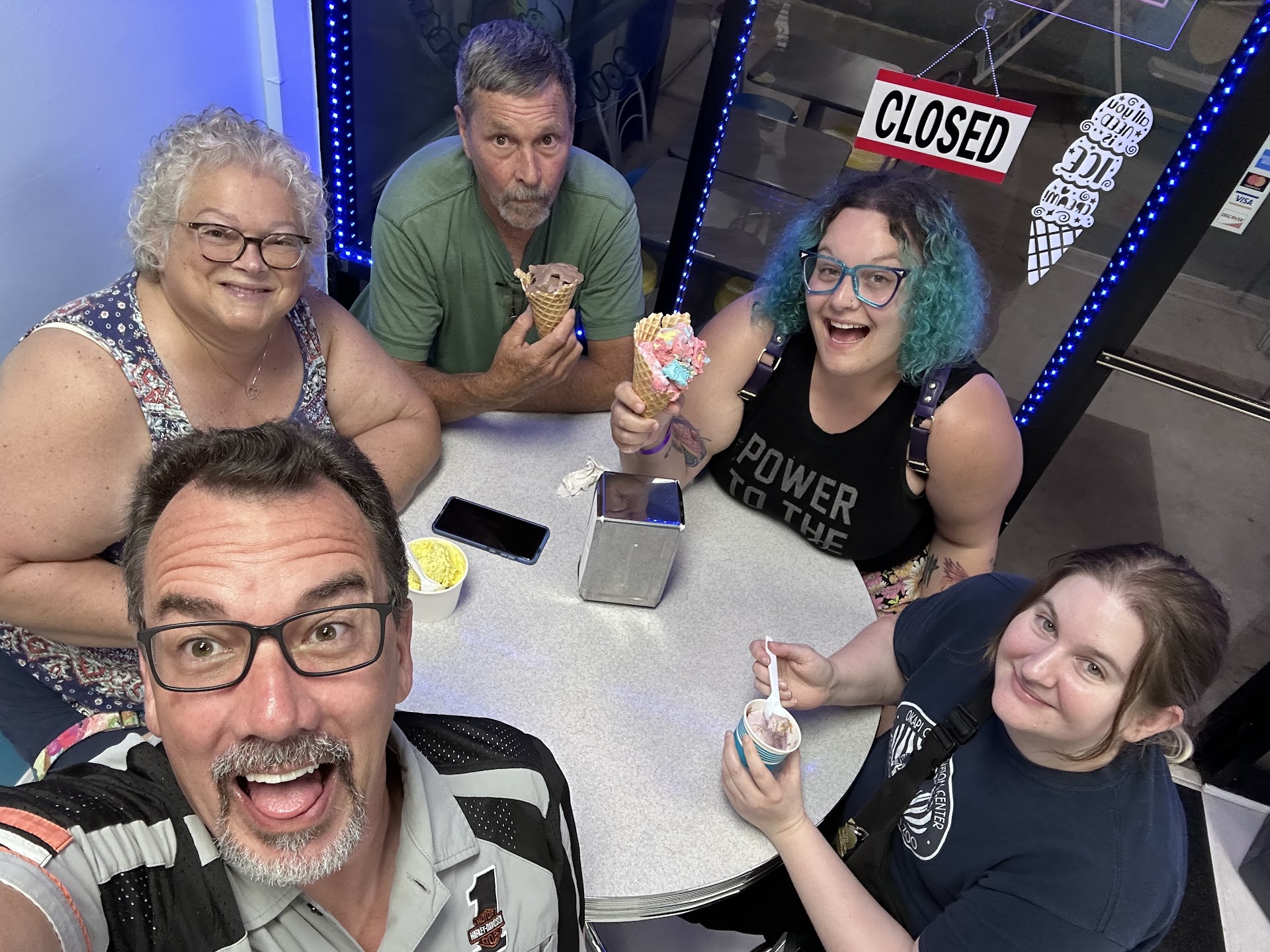 Read moreWe miss Rich and the casual way he and the staff interact with customers while delivering the BEST gourmet ice cream we’d ever had anywhere. Shelly and crew didn’t miss a beat either getting up to speed providing the same superior service and delights as the original owners did. I wondered why they were closed on Tuesdays- well that’s so they can mix all those great flavors!!! Orders are generously served up with smiles. You just know it’s not just a business but an ice love fest!!! Rich thanks for the years building the business up to be a premium neighborhood standout. WELCOME SHELLY!!! We can even call ahead and out to go orders are ready. My favorite? Hot fudge sundae with layers of drizzled hot fudge between layers of butter pecan ice cream topped with exactly 3 cherries - a masterpiece. Whether an individual, car load or bus load stop in for the best of the best ice cream ever. King, queen, & princess -...