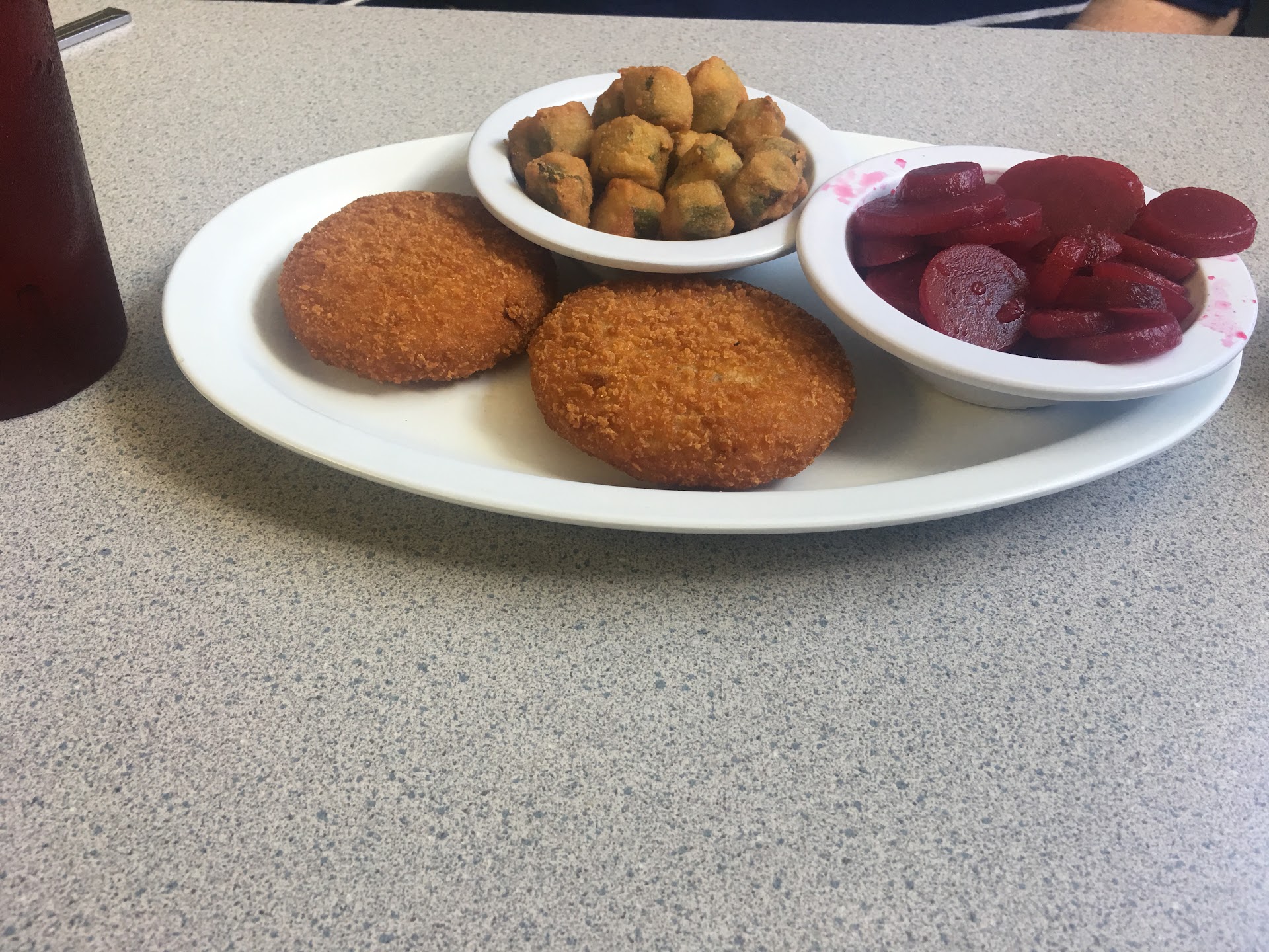 Let me start by saying two things 1) please note this is real country diner cooking. No frills no hipster nonsense for food it’s real southern country cooking. 2) I haven’t been here in over 10 years until recently. The hours changed since then and they no longer did dinner and were always packed so I just didn’t go in then I moved. With that being said I’m go into my review. I finally made it back in on a whim. This place is the same as it was 20 years ago when I came in as a child and I mean in the best way. They changed the booths which was the only real difference I spotted. I’m so glad most of the items from my childhood were still on the menu. The specials are updated almost daily on the menu board which is great. I got my childhood favorite grilled cheese but instead of fries I got the potato salad. My mom got the crab cakes with hush puppies, fried okra, and beets. I was surprised at the crab cakes the most out of everything we ordered. They were deep fried and had a good flavor. I’m going to try to make it in more often now that I know it’s still the same cooking they’ve had for almost 30 years.