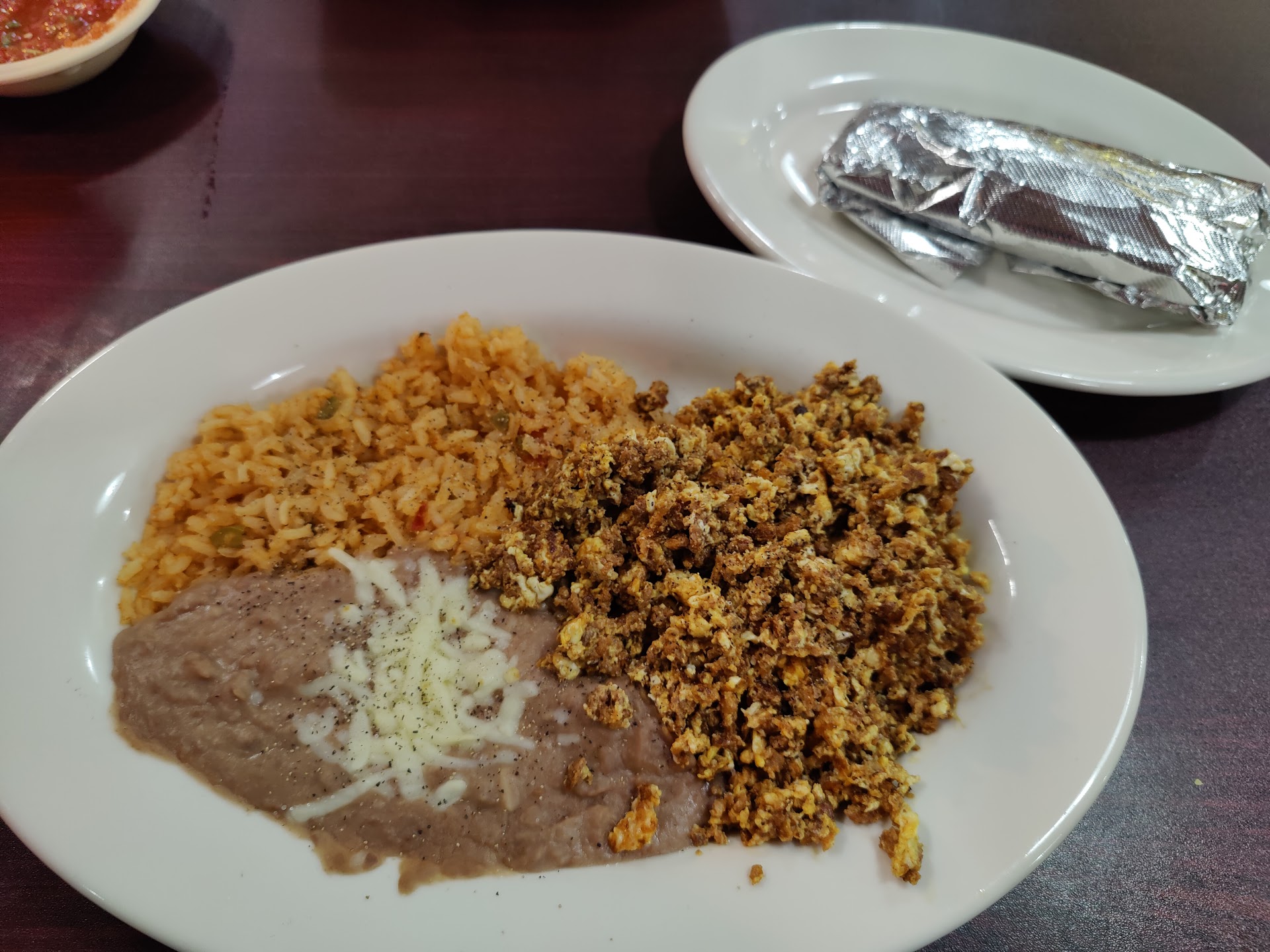 It was just after 9pm on a Saturday night when I drove by while out looking for a bite to eat, and I noticed they were still open. Decided to check when they closed, and it wasn't until 10pm, so I stopped in. I was promptly greeted in a friendly and courteous manner, and told I could sit wherever I liked. The server arrived quickly to offer a menu and complimentary chips with salsa (standard fare at Mexican restaurants around here), and took my drink order. I really had a craving for chorizo con huevos, but it was only listed on the lunch menu. I asked the server if chorizo con height was available outside of lunch, and she said yes. So I ordered them. The food came back pretty quickly, and I was told the plate was hot. It wasn't just hot, it was nuclear, so be warned that when they say a plate is hot, they're not playing (thankfully no burned fingers but if you have little ones, be watchful). The tortillas that came with the entree were about as hot as the plate. The tortilla chips served prior to the meal were of the thinner variety, so they didn't feel too heavy to munch on. The salsa was flavorful, and definitely not spicy, though I found it need just a dash of salt since I don't think the chips were salted. The chorizo con huevos comes with a nice portion of chorizo mixed into scrambled eggs, Mexican rice, and refried beans topped with a little cheese. The chorizo was flavorful, but not as spicy or overpowering as some chorizo can sometimes be. The eggs were also cooked just right (they're very easy to over cook and whoever prepped the meal did an excellent job). The server was very friendly and outgoing, and it looked like there was plenty of staff on hand taking care of the few other diners in the restaurant. I was checked on frequently, and my drink refilled as needed. Sadly, they were out of horchata, which I've had from here before, and found it quite enjoyable. I've actually had their food carry out a few times prior to this visit. Everything I've tried has been good, though the time I tried their menudo (they serve red menudo), I was saddened by the lack of hominy. It was still pretty good, but I'm used to it having hominy. One thing I wish they had more of was a better variety...