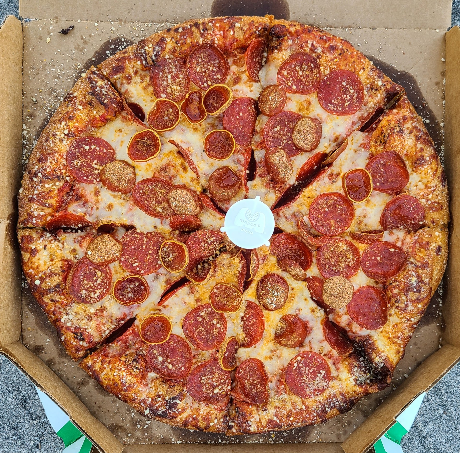 Read moreI ordered my pizza at 8:40pm with a delivery estimate of 9:15 -9:25pm at 9:55 I called to ask where my pizza is my pizza was enroute at that time it was 1 hour 15 minutes since order was placed and a very friendly employee advised me and time now and that the delivery guy is new and also the only delivery guy they have at the moment so slightly annoyed but understanding the situation I hung up and waited for no driver to show so I called back ,mind you we are now at 2 hrs or just shy of that I was hangry as a @#$__ I was put on the phone with the manager who sounded very apologetic and said he's remaking my pizza and explained the trouble with the new delivery guy which I understand happens and that he would be personally delivering my pizza ,before I hung up I asked could I have the pizza that was originally intended to be delivered for my babies ( 4 170lb great Dane puppies) he said absolutely , when he got to my residence with a firm handshake he again apologized and couldn't express more his desire to fix the situation and he proceeded to take out 7 freshly made pizzas 3 labeled FF or me and one for each of my pups all different toppings on each and 2- 2 lltrs /of pop , I without a doubt was left speechless this manager is the appitamy of doing your job to best of your ability , he didn't have to do anything in fact that was what I kinda expected because most restaurants just dont care , Marcos pizza in crystal river is a top notch pizza maker with a manager that puts the customer at the highest level of satisfaction I've ever experienced if all restaurants operated like his it would change the game, not only did he eep my business I am now unofficially the new sales promoter for his location , 😉💯 so citrus county feel appreciated and get treated like royalty and go get a delicious pizza from Marcos and tell them Chad sent you , Thank you very much Marcos crew keep it up this town needed a place like this !!!! Beyond satisfied customer...
