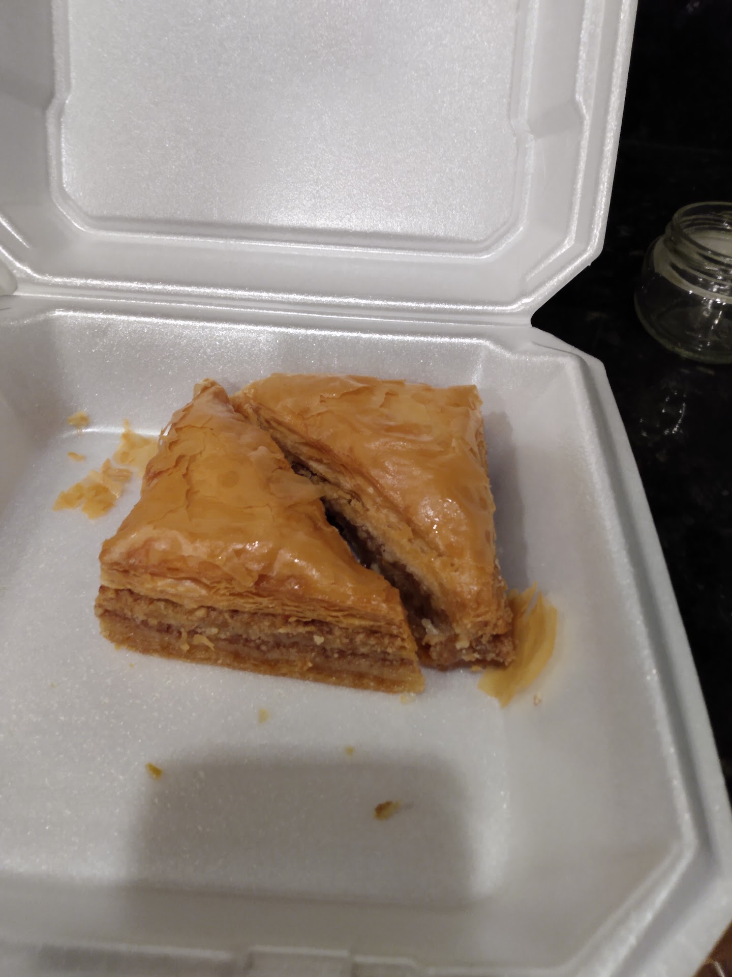 I was served my pie first as the saganaki was forgotten. After looking and tasting it, it was that of a wet diaper wrapped in toilet paper made more than a week ago. I asked when they made it and insisted it was today. It was reheated so much the bottom was burnt and the top was dry. My side Greek salad also looked like someone dumped a can of pepper all over it. Strike two...