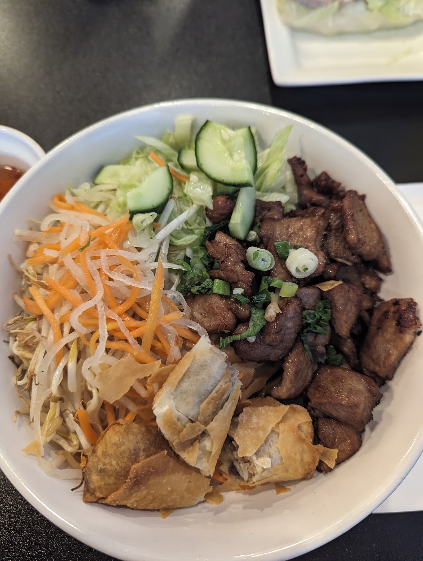 My wife got the Special Vermicelli, I got a Shrimp Banh Mi and a fried Egg Noodle dish, and our friend got the Pho. All of it was absolutely delicious, ripping hot, and surprisingly affordable given how generous the portion sizes were.