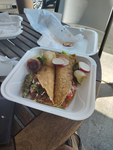 The food was delicious, the service was very friendly and welcoming, and the servings were generous too! It is parked in the parking lot of a now-closed restaurant but there are still some simple tables with folding chairs for folks to sit and eat at. Not the most scenic place to eat but it’s good for a quick lunch or dinner spot, otherwise you can take your food to go too of course. They give you napkins, forks, salsas and mini...