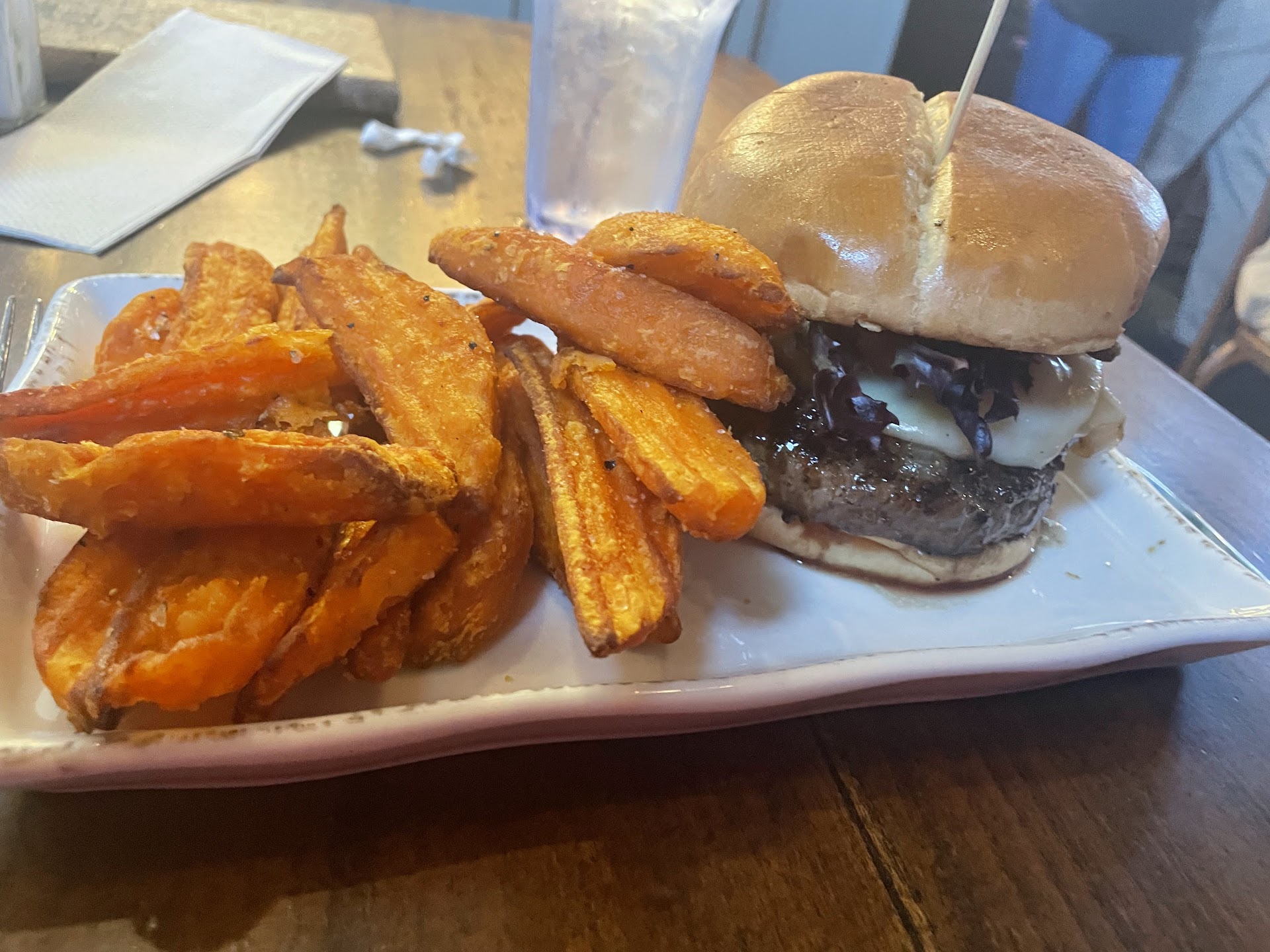 The caesar salad with chicken was great but didnt compare to the Gouda Burger, which might mention has been on the menu since the start. The sweet potato fries were stand outs being perfectly cooked, mushy inside and crispy outside.