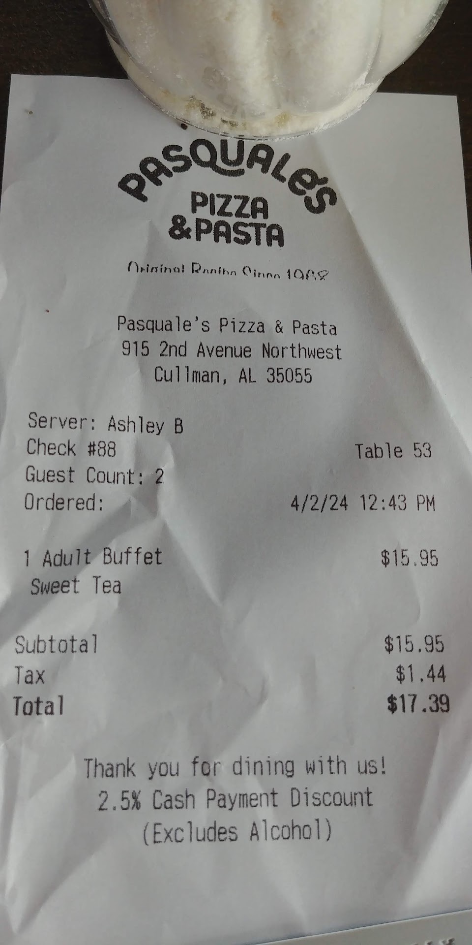 Read moreAbsolutely the most disgusting place I have ever been to eat.was there yesterday, May 2. We literally paid $18 for 2 buffets, took 1 bite, got up and left. It was a few minutes before 12. The salad bar was almost bare. Oneions were clear and slimy. Lettuce was wilted. Ranch had huge lumps in it and it wasn't blue cheese either. The one bite i took was of shells and cheese which were so cooked they were mush and cold. Not room temp but cold. I could see behind the buffet a pizza oven or something that apparently was leaking something anfmd they had a box in the floor catching whatever was dripping and it appeared to have mold all over it. If that wasnt enough 2 women came to the lobby from the kitchen area with nasty clothes. No hair nets. Stringy hair. Clothes looked to not have been washed for a while. One lady had on open toes flip flops with nasty toes hanging out. The other lady picked up all off the parmesan cheese containers to carry them to the back, i hear! The other one tell her to fill them. In that case when does the container get changed? Always gets new put on top of old. Everything including tables were sticky with years of old grease buildup. Same with the counters and trays. The 5 minutes I was in there, i felt like I needed a shower. It was horrible. I will NEVER go back and do not recommend this place to anyone. UPDATE: IF YOU WILL LOOK AT THE REVIEW, THE OWNER PRETTY MUCH COMMENTS THE SAME EXCUSE TO EVERYONE THAT LEAVES A NEGATIVE POST. 3 MONTHS AGO SHE REPLIED TO A 1 STAR BY SAYING SHE HAD A HEALTH INSPECTION THE SAME WEEK THE CUSTOMER COMPLAINED, AND ITS IRONIC THAT NOW, 3 MONTHS LATER ON MY 1 STAR SHE SAID THEY WERE INSPECTED AGAIN THE DAY "AFTER" MY VISIT TO HER STORE. 2 HEATH INSPECTIONS IN 3 MONTHS. WOW,...