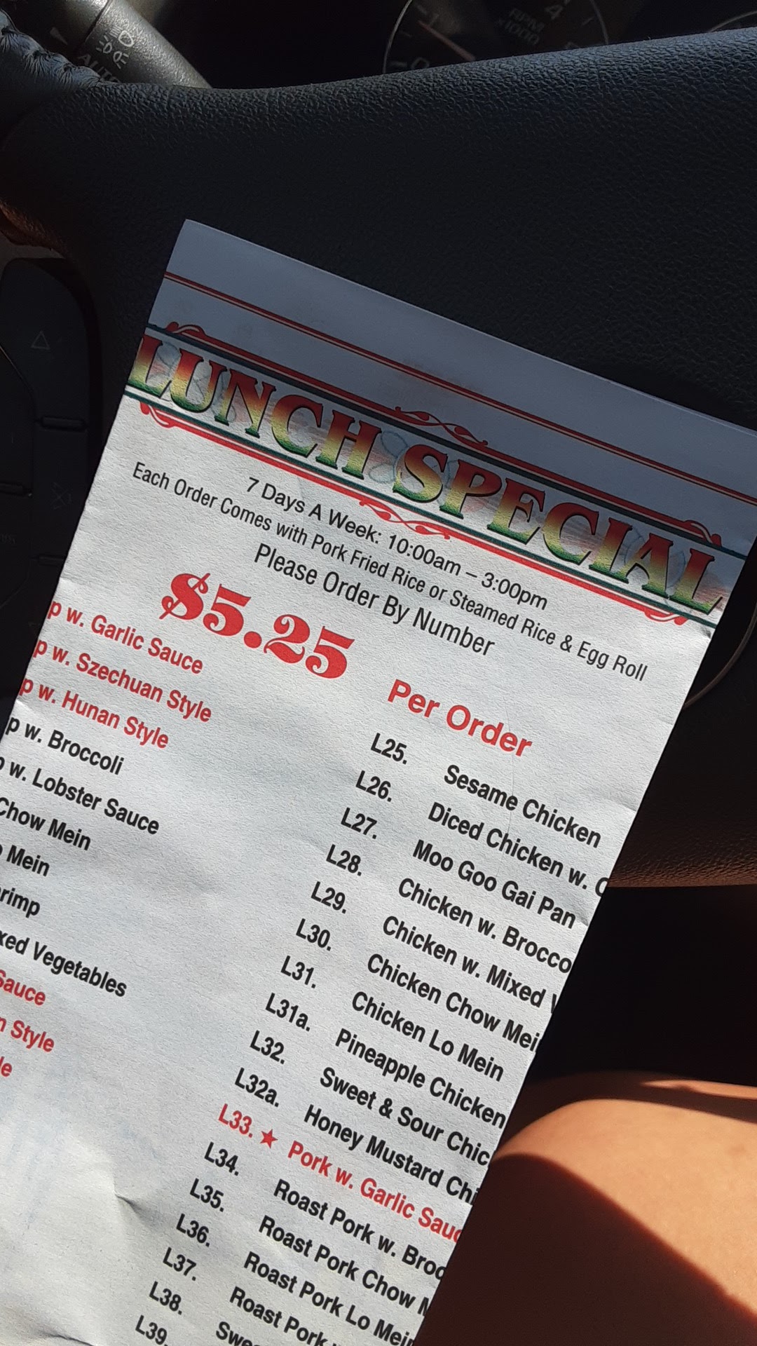 This was my favorite Chinese restaurant until they recently got my order wrong and then lied to me about it. My favorite dish is honey chicken and it's what I almost always order. I've been getting it once or twice a week for several months now. I'm very familiar with what it looks and tastes like. On my most recent visit, I picked up my order and checked it before I left. The dish I was given did not look or smell like honey chicken. I'm pretty sure it was General Tso's chicken. I took it back up to the counter and asked if they were sure my order was correct because what they had given me didn't look like the honey chicken I was used to. They insisted that it was, and that maybe I was confused because there were some green onions in the sauce. So I went ahead and took it and tasted it. Definitely not honey chicken. I don't really mind that they got my order wrong. Mistakes happen. But I most certainly do mind that they lied to me when I called them on it. The food here really is good and the prices are hard to beat. But this experience has left a bad taste in my mouth. I may still order from time to time but I will now be checking my order before I pay for it. I suggest other patrons...