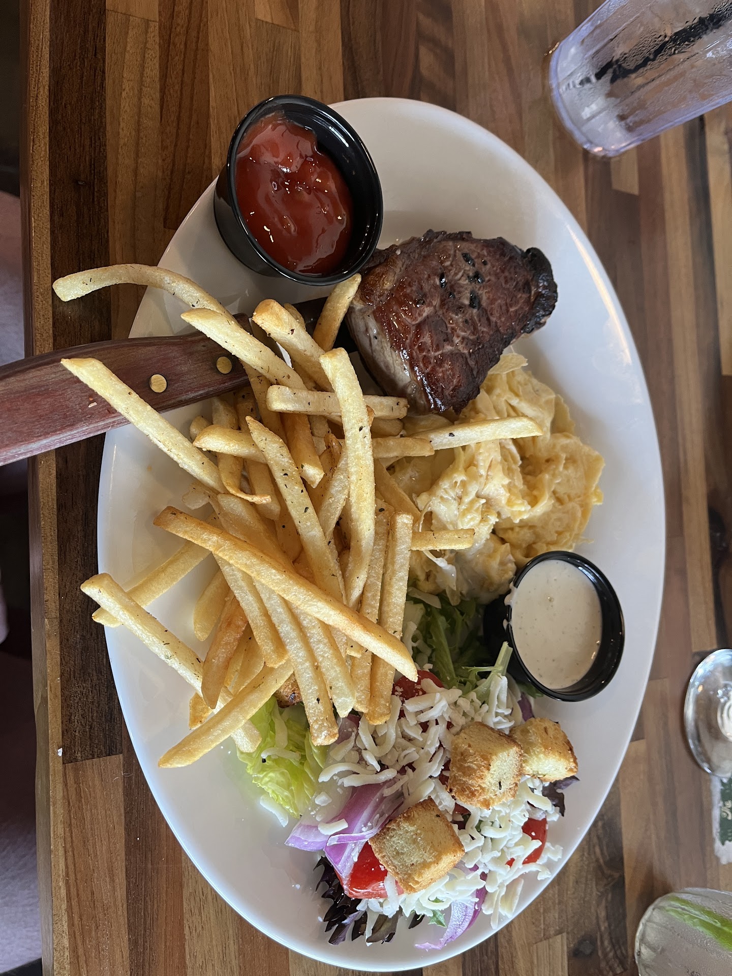 The food was very good! We tried the 8oz. bar steak and eggs, chicken and french toast, and the Nashville chicken. All the plates were cleaned which is good but I do have doubts about the 8 oz steak. Of course there's no way to vibe check the restaurant on the weights, it just seemed a little smaller than 8 oz steaks at other restaurants. Like I said, it's so hard to write this review as I find myself complimenting the restaurant but also taking away from the compliment to give the whole truth.