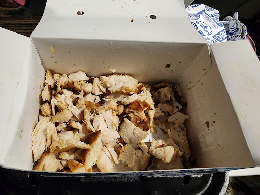 While we were picking up our order through their drive-thru, they showered our Golden with hello's and loving compliments. The staff gave us our meals and a surprise of delight in chopped grilled chicken for our pup which she heartily ate.
