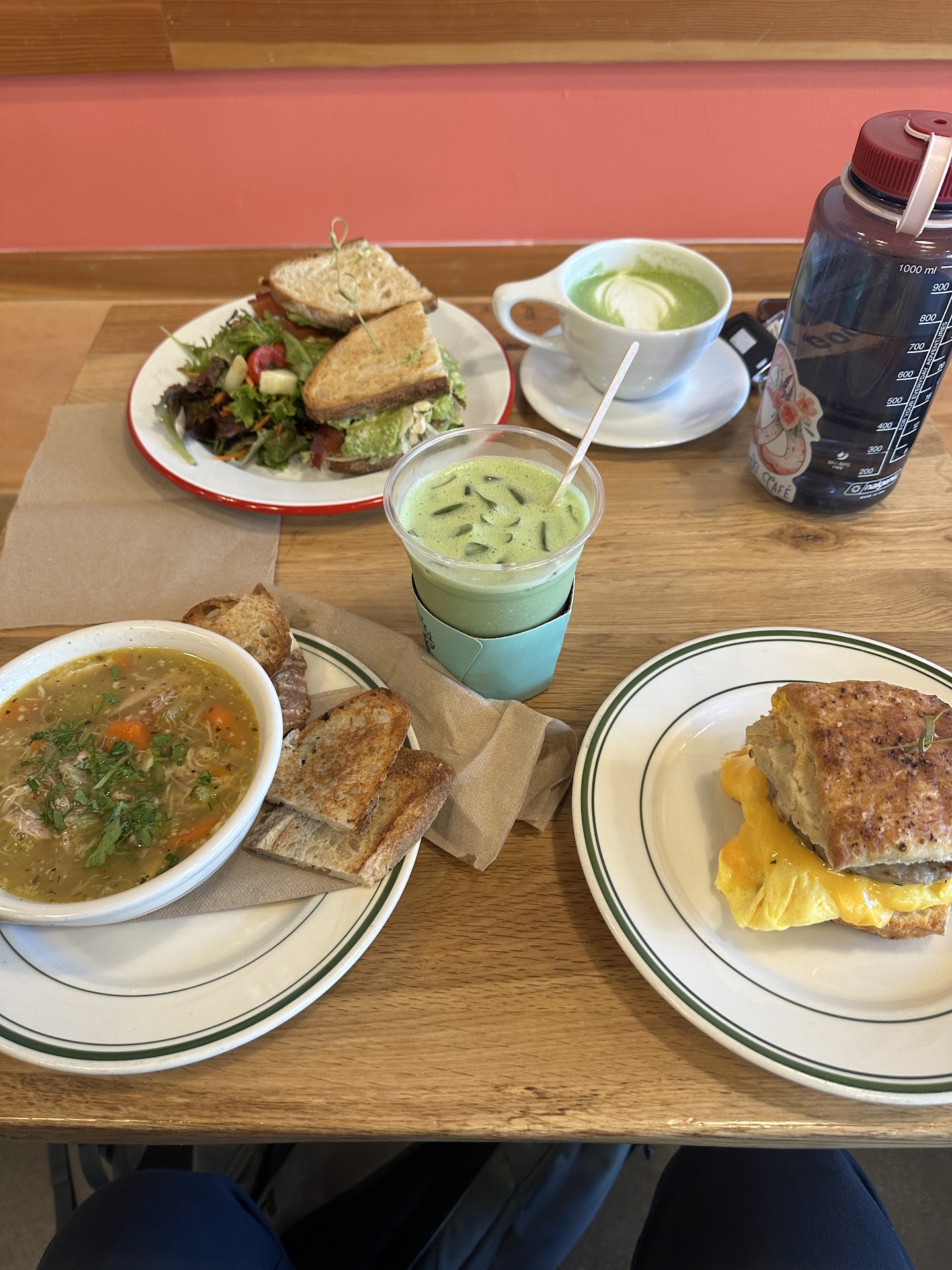 This is the best lunch in Culver City. Price and portion are reasonable. The quality is way higher than I get at other places paying more. The chef is doing some real magic. Been looking for bay cities type sandwich shop closer by. Breakaway cafe is it. More than satisfied with their chicken pesto sandwich. Well seasoned with creamy pesto and spicy side salad. Chicken was roasted to perfection. Looked like it was carved from whole chicken, or was separately roasted-- succulent and well seasoned. Matcha pistachio toast was very creative. Also have had the Mediterranean sandwich with I think haloumi cheese, eggplant, garlic butter, heirloom tomatoes on just the perfect crusty/soft bread. I'm sorry no disrespect to other nearby shops with eggplant sandwiches but this one here is where you can find one that has flavor and seasoning. Honey croissant was really nice texture, not dry, not too sweet; reminded me of a good asian bakery. Not that much seating (some tables inside, some outside on wide sidewalk). I have personally never had a problem getting a table when I arrive. Food comes out pretty quick which is perfect for a lunch break. Staff are kind and helpful. Just a gem of a place. There is a free parking lot just east to the entrance.