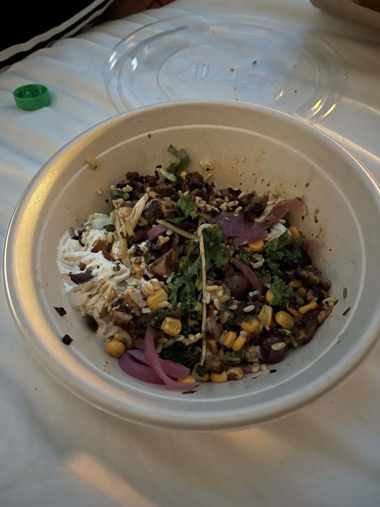 First time going to this restaurant. It was late night and they were the only ones opened late so we figure we give it try. 30 minutes before closing time. Everyone seemed to be nice except for one employee. A young girl with a bad attitude. First she tossed some greens and sprinkled a few grains of rice in our bowls. Then literally tossed our scooped ingredients with force and anger in our bowls. When it came to dressing she squirted the dressing like a crazy maniac like a half a cup of dressing each squirt. She squeezed so hard that her arms and face got splattered with dressing. She just wiped herself off in front of us like it was a normal way of serving customers. The splattered dressings also landed on most of the other sides that were on the trays. We ended up with a bowl of drenched dressing almost like a soup. We ate some of it but couldnāt finish eating half way through our food because it didnāt look quite appealing and just figured this was the way this dish was supposed to look and just thought that this was their way or style of serving at this restaurant. After we left we searched other picture reviews and realized how disgusting our bowls looked compared to otherās. Overall I think taste is great. That girl needs to be removed or look for a different type job. Sheās clearly not happy working there and shouldnāt take her anger out customers. What upsets me the most is that she did all this in front of her manager and coworkers and none of them stopped her or pulled her to the side. Only the gentlemen at the cashier was so kind he gave us free drinks....