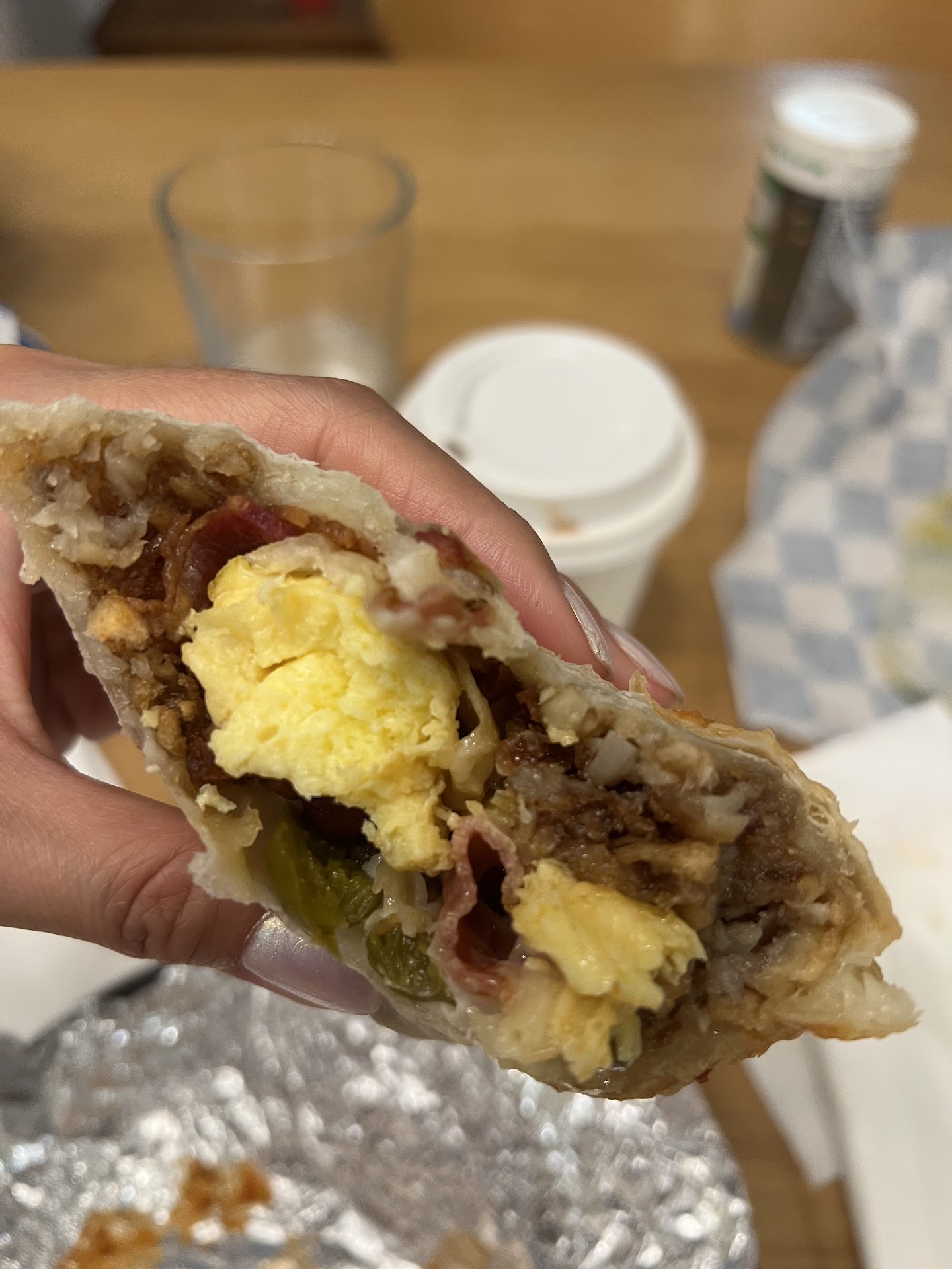 I ordered the chorizo burrito ($13) and bacon burrito ($14). The staff took my contactless payment quickly and had my food ready in about 15 minutes.