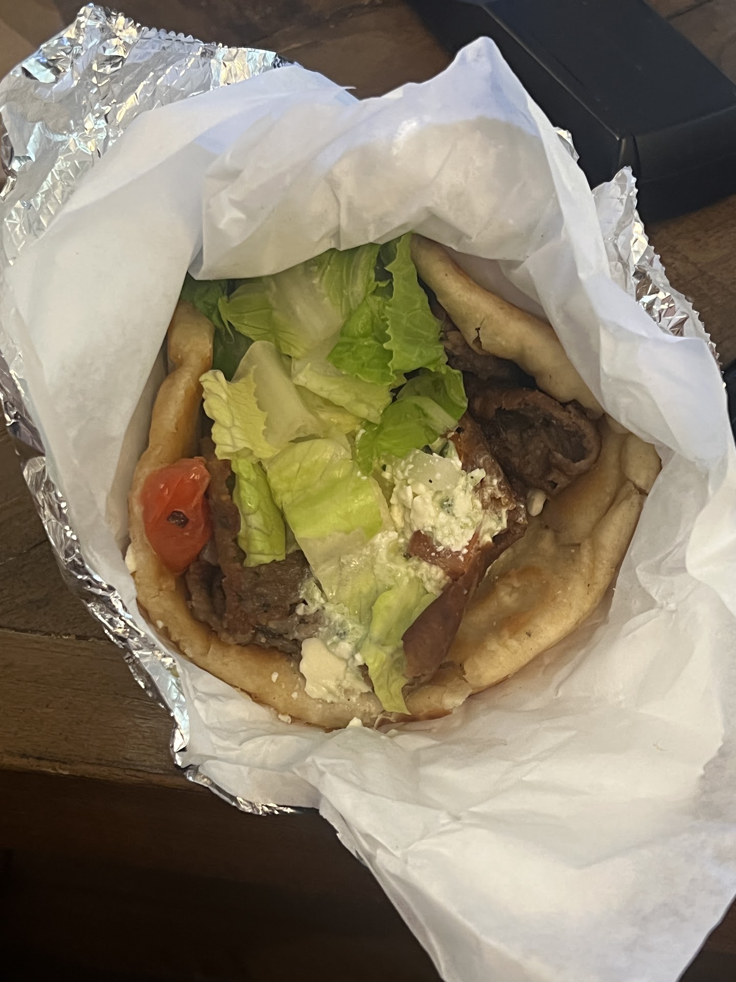This gyro was life-changing. I found myself in the vicinity after a disappointing day of trying to patch a tire which led me across West LA to a tire shop down the street. I was hangry and disillusioned with the state of my day, which quickly went to waste quickly in the midst of my complications. This gyro sandwich is the redeeming factor of the past four hours of my existence. When I entered, I was confused by the lack of prices, menus, and... people. There was an older woman who met me with a warm smile and welcomed me in as if I were her own grandson. She quickly took my order, which left me gobsmacked when I saw that this, unbeforeseen-at-that-moment mystery gyro, would only cost a mere 11 dollars, including tax and a 20% tip. The woman quickly got to work and I witnessed her prepare my gyro with care and intention, shaving it carefully off the spit and garnishing it with a superb amount of toppings and delectable sauce. The gyro was fresh, tender, and satisfied my hangriness and impatience with ease. This is the definition of comfort food. The gyro was served on a random cutesy plate which completed the developing hole-in-the-wall restaurant discovery saga for me. I inhaled the sandwich so quickly it must have startled the woman. On the way out I thanked her for my meal, dropped my dishes off, and she told me: "have a wonderful night, until next time ." This spot epitomizes small business America in a way which no Greek chain (looking at you Daphne's and Luna Grill) will ever emulate. Bravo and I will...