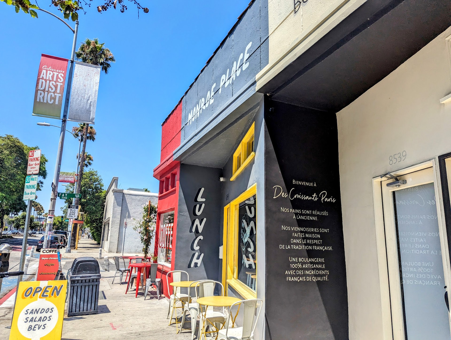 Monroe Place is a neighborhood sandwich shop that excels in making signature, gourmet sandwiches. Their sandwiches are meticulously put together with the best quality and freshest ingredients. Alex and Sara have used their Culinary Expertise to create a very special menu. Court Street: The horseradish complements the roast beef perfectly, the arugula and crispy shallots blend in immediately with a special baguette from out of thin air bakery. A very awesome sandwich. Serenity Now: The spicy Serrano spread with cucumber/red onion salad, really stands out with the feta cheese, and exquisite bub and grandma's focaccia bread. It is a very balanced and satisfying sandwich. The Big Bambino: The buttery taste of the Burrato combines with the tomato confit to complement with the soppresseta and honey. This sandwich was very rich and creamy, and the baguette was from out of thin air bakery. WLF: is a combination of flavorful ingredients on dub and grandma's focaccia bread. I think that barberries and crispy shallots add to the unique flavor of this sandwich. I feel that by layering certain ingredients on the sandwiches help to balance flavors and textures. The attention to detail of Monroe Place and stellar, customer service are both noticeable as you walk in the door. Monroe Place is truly a Class Act, the cleanliness of this shop was immaculate. If you're in Culver City and you crave heavenly sandwiches, Monroe Place is your final...