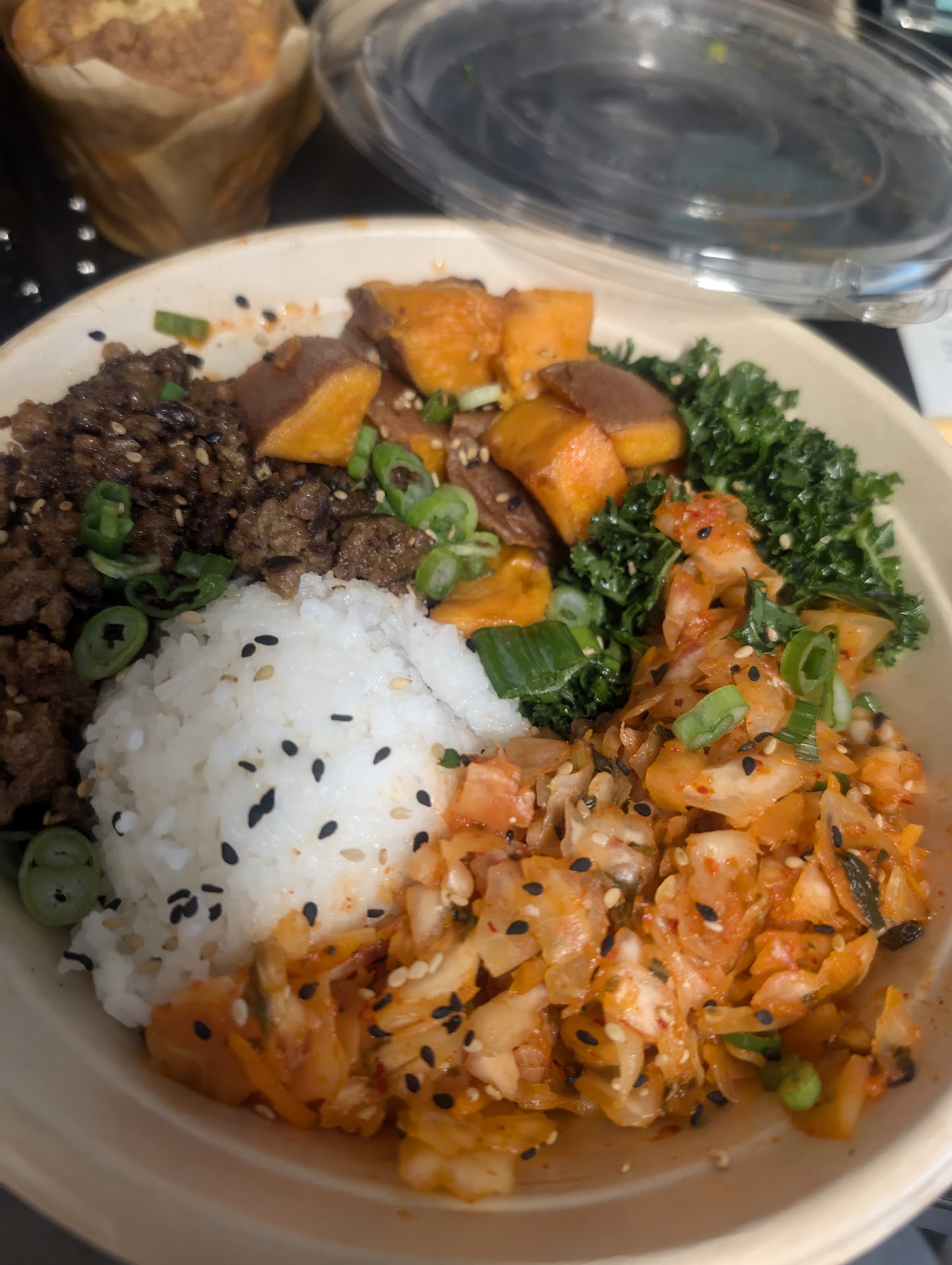 Contrary to most reviews our food came fast. It was good while it was hot and then as we kept eating it got less and less edible. The chicken in the hot chicken bowl and the flash fried cauliflower in my build your own bowl tasted like it had just been frozen and reheated and was very chewy. Kimchi was horrible. Tasted watered down and gentrified. No bite, vinegary, garlic flavor at all. Felt like I was just eating slightly spoiled cabbage. Impossible potstickers we’re tasted good but they fell apart and stuck together. I think they were overstuffed. I also think that I didn’t get the sauce meant for my bowl bc the flavor was pretty bland. I did really like the kale and other vegggies in the bowl. Overall it was nice to try something new but the food was just okay. I probably...