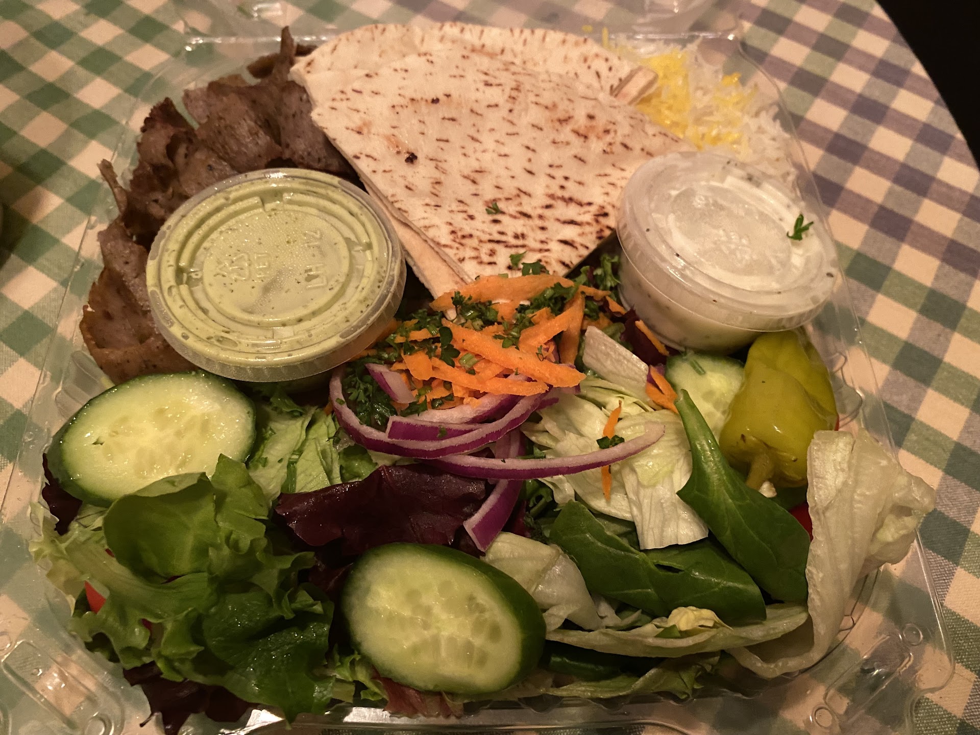 We ordered the Gyro plate and the Chicken souvlaki plate which came with a lot of food, enough for leftovers or maybe even two people per entree if youāre a light eater. Each plate comes with salad, pita, tzatziki and your main. Iād say the real winner here is the Gyro meat - delish! The rice was just a little dry though if there is one thing Iād say could be improved - also could be that I got there a little before they closed. But what can I say? Iām a rice fanatic!