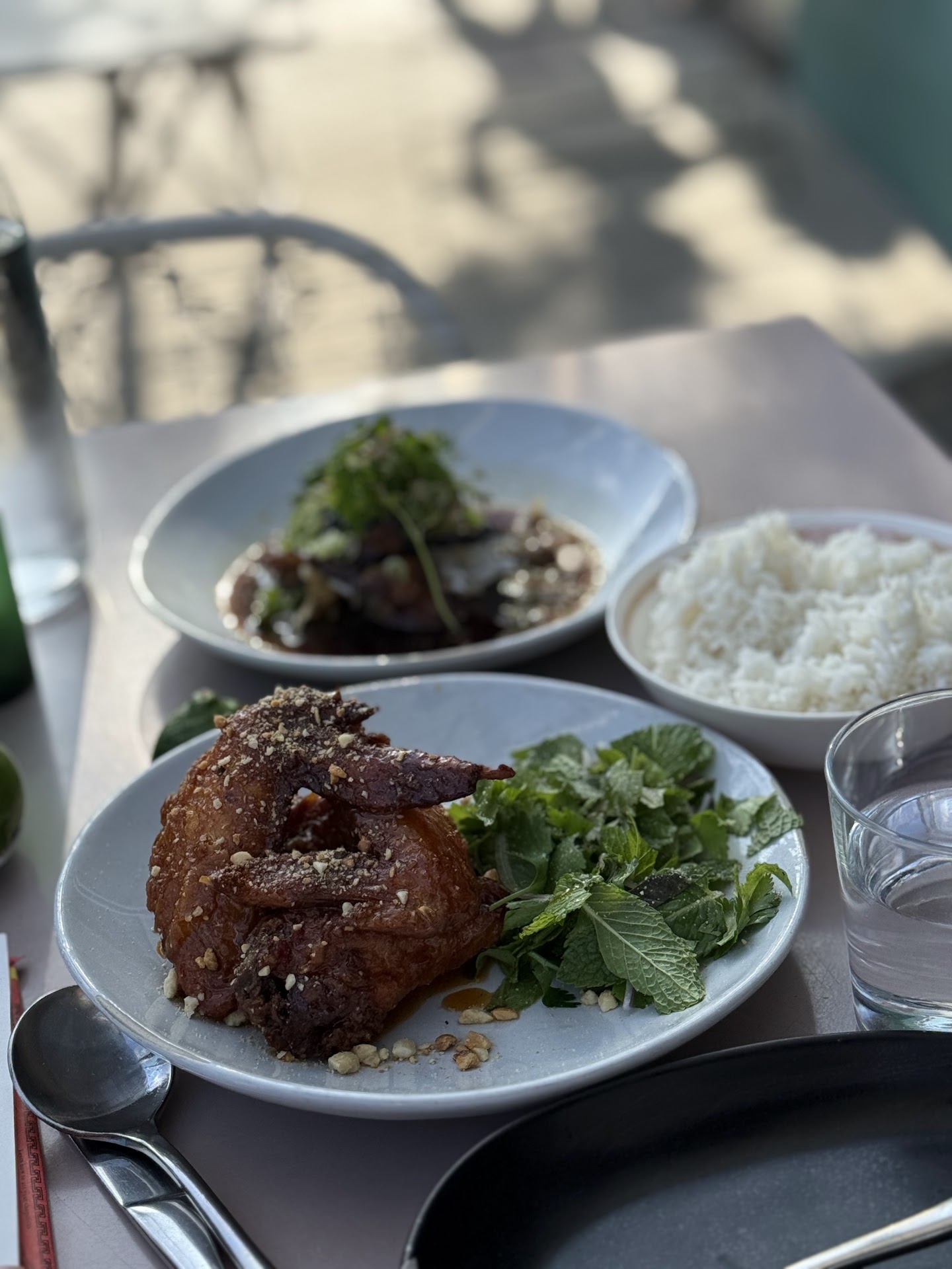 Today I had the chicken wings, the pork jowl, rice and cocktail called Bangao Tea.