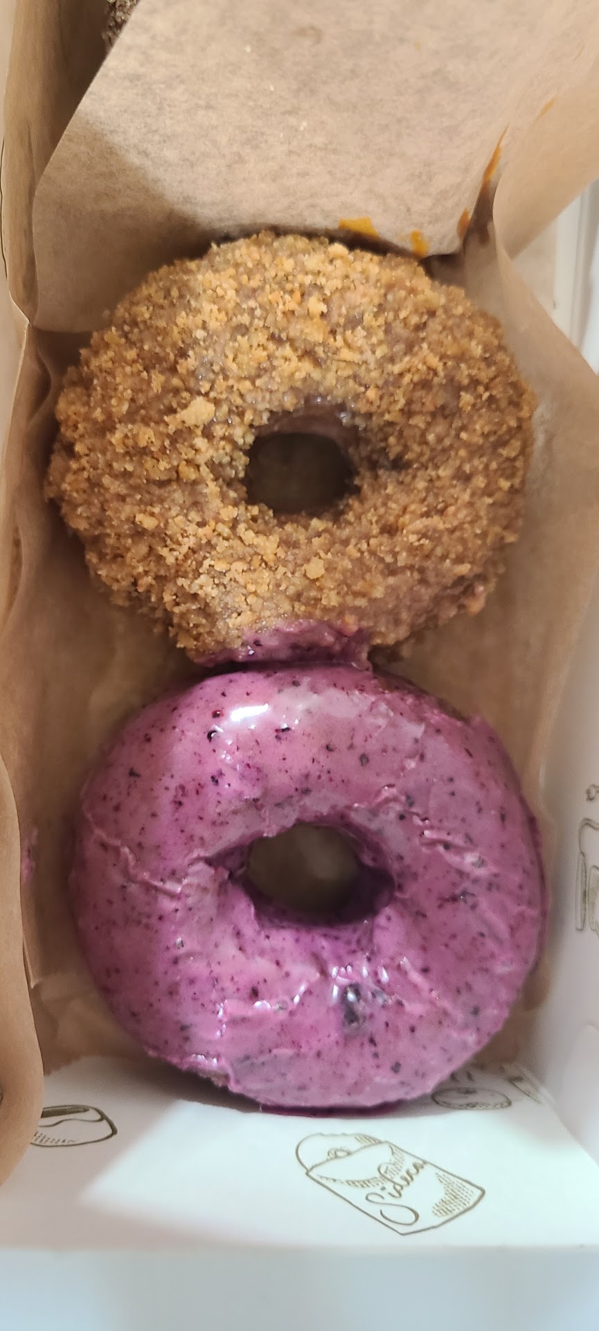 We tried 7 different donuts and I'll list them in my order of preference. Maple Bacon. Great flavor and a surprisingly light donut. Vanilla Bean Glazed. You can actually taste the vanilla in the donut and the glaze is just right without to much sweetness. This was the family favorite for sure n Dulce de Leche churro. Heavier donut but the flavors were good. Not that distinctive but nice. Old fashion. Heavier donut but a great classic. Gluten free strawberry shortcake. Not bad for a gluten free donut. Not my style but pretty good. Gluten free huckleberry. Ditto. Lol Choc-a-lot. Surprisingly I didn't like this one much. Perhaps it was too overbearing and more a club to the head versus the others that were more subtle flavors. Of course my son loved it.