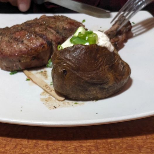 We went in and found a booth which needed my napkin to clean it. It had already been their idea of clean. Not mine. A server came by took our receipt and asked if we wanted some garlic bread. It never came. Our food arrived and my burger was medium well. Gross. My baked potato was filled with sour cream. I tasted my burger and though I am not eating this. I sent it back to have it and the potato done right. My husbands steak was medium. He just ate it. He was not thrilled. My food came back and again the burger was overcooked. The baked potato had no softness to it. And where is that bread. Not coming, ever. I tried to eat this way over cooked burger and I was done. I sent it back and said just take it off the bill. No one came to say sorry, our server sort of disappeared off the planet. My husband was bummed because he knew I would not be having dinner at all. Oh well.
