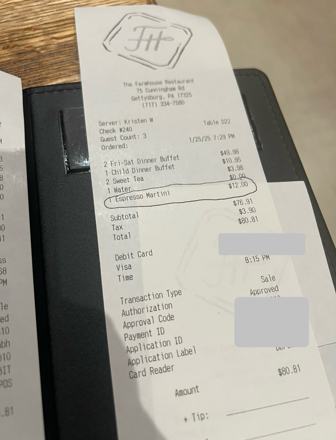 When we got our bill , i checked to make sure it was correct. 2 adults, 1 child (8) , 2 drinks, 1 water⌠great total with tax is $68ish. I had my card and our servers leaves to run it , comes back with the receipt that you sign/put tip on and the total has changed and an expresso martini was added and charged, I tried to look for our servers and she was MIA. I asked the 4 servers/staff standing as the front for a manager (woman with short brown hair) and Kyle was helpful enough to find her , she on the other hand acted like we were wasting her time and avoided us like the plague. Kyle voided our initial bill and our server reappears with the new bill and in the most condescending way possible explains what our bill is , no apologies for her mistake. She said oh the table behind you is the same (they were NOT, it was an older couple withOUT and kids).