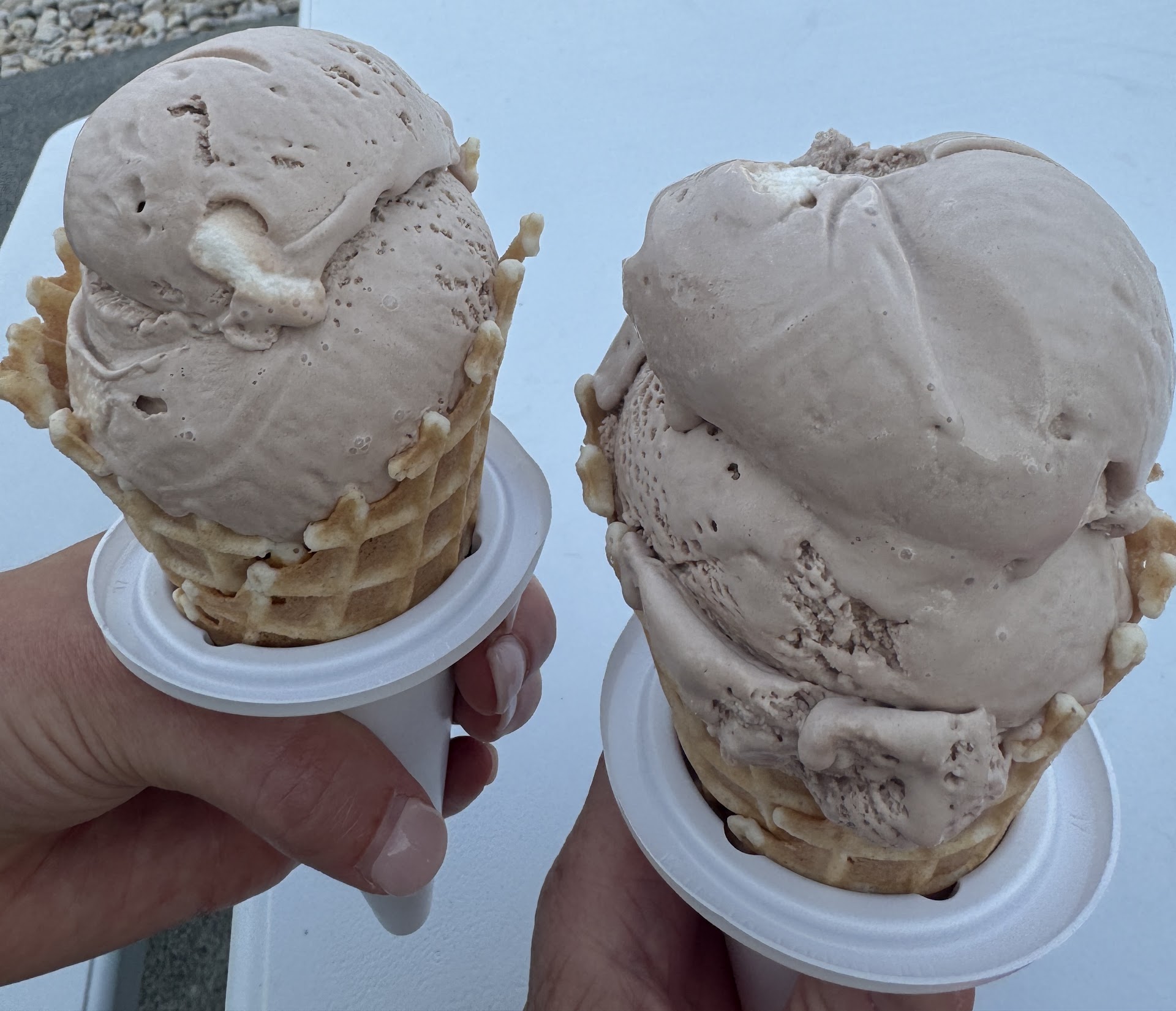 There is no seating inside the shop. However there is a counter along the window where you can stand. There were several, round, picnic tables outside the shop, which is where we sat to enjoy our treat. This shop offers pints and quarts packed to go. I would have loved to take a few of those, but I had more than a 90-minute drive home.