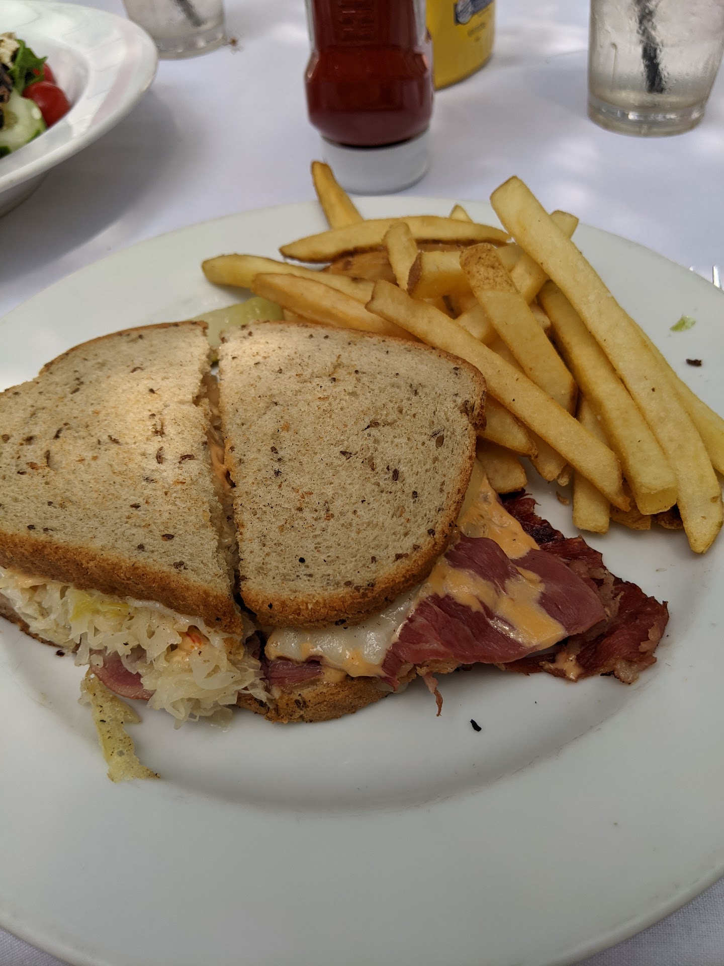 Read moreIt's hard to judge a spot when you're from out of town and will probably only ever be there once. Based on my experience during lunch on a Wednesday, I'd say it was decent but I was hoping for more. We sat outside which is a really nice area, they have several tables setup under some shade trees. We were inside briefly and it had a great old school vibe which is fitting for all of downtown Cumberland. Service was good, only complaint being we received the wrong type of chicken salad. One of their specials was chicken salad (like tuna salad) with fruit on the side but we received a salad with chicken on it. Didn't mention anything because it looked like a good salad, and it was, just the wrong kind. The Reuben was average. I expected great things since they have a deli with corned beef on site but I'd be interested in trying something else if I'm ever in town again. Overall, nice atmosphere but the food that we ordered didn't blow us away but like I said, it's hard to judge an entire menu on two items so four stars seems reasonable because I'm sure there are some gems that we just...