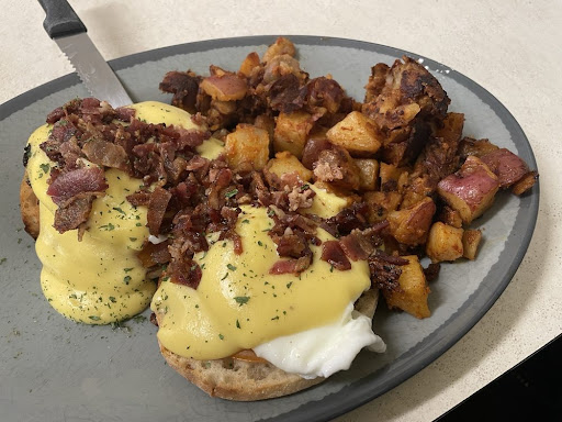 Eggs were PERFECT. The bacon was HUGE with multiple pieces easily twice the size of almost every breakfast place I have visited. My friend was also EXTREMELY pleased with his hamburger omelette, which was an enormous portion ...