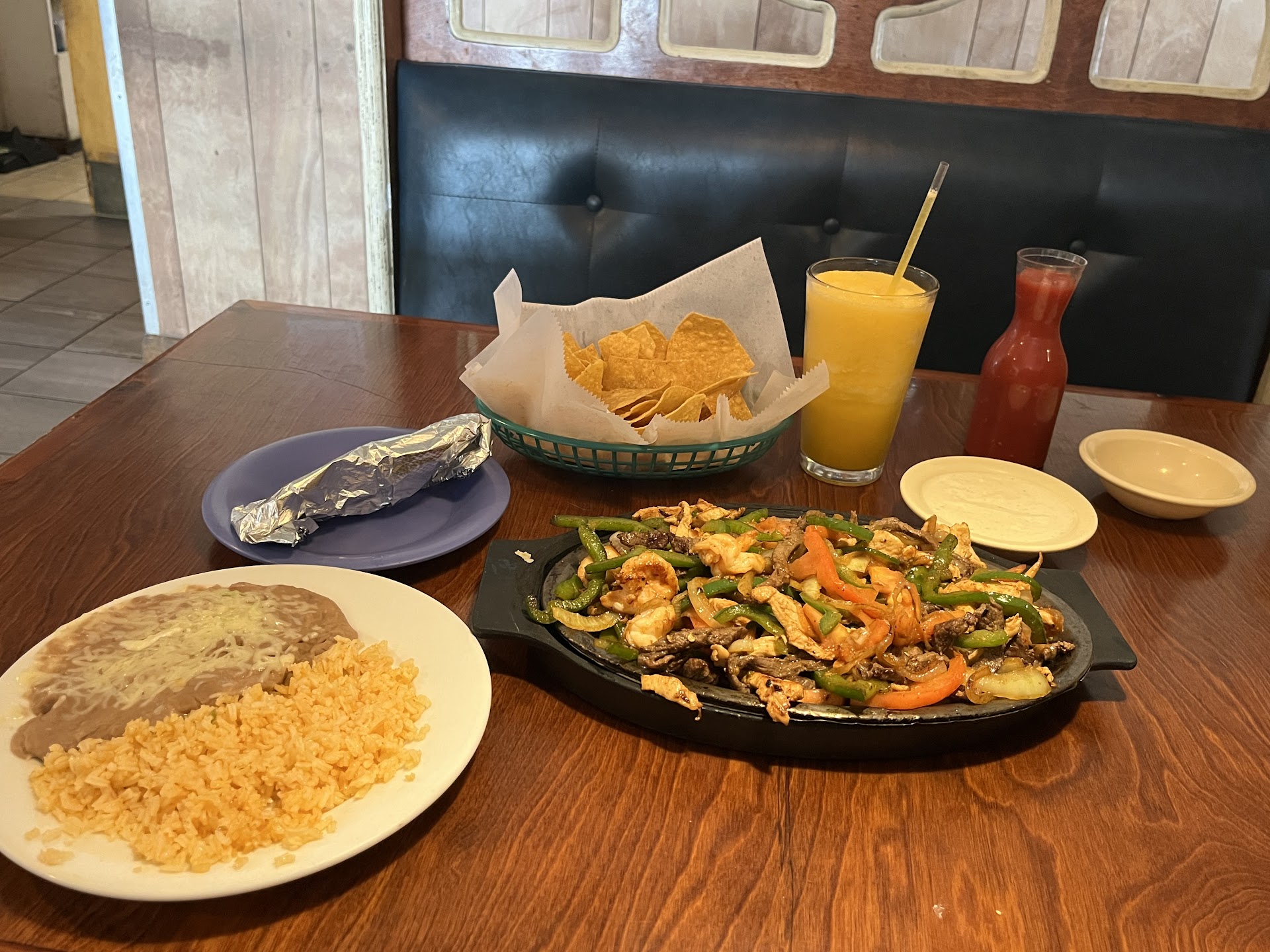 I was passing through for a work trip. I have eaten here before. This is an old building and the decor is kinda dated, but I'm there for the food, and some of the best meals I've had are in places that still have the original wallpaper and decorative sconces on the wall. I walked in, looked at the menu, and ordered carryout. I had my eye on a couple of dishes, then asked the server which one I should order (always ask the locals what they eat). He volunteered his favorite choice, which was neither of mine, so I ordered the "Choripollo" -- a mix of chorizo/chicken/cheese with beans and rice, and some tortillas on the side. I followed that up with an extra sides of beans and rice (separate dishes). It cost approximately $25. The food came out in about 15 minutes. When I got back to my hotel, the bag was full and my food was hot. That always amazes me about Mexican restaurants. How is it that refried beans can melt steel after 20 minutes in a foil carryout dish? One of life's mysteries, I suppose. Pleasantly surprised, I found an overloaded bag of chips with an ample supply of salsa alongside my meal. I knew this would be way too much food for one person, and this is coming from a guy who defeated anorexia years ago, i.e., I'm not skinny. Anyway, I gave half my food away to my hotel manager because he's always cool and gives me extra water bottles and quiet rooms for my telework. I divvied out the food, and basically built two big burrito bowls. I just poured everything in, so we had two mounds of chorizo/chicken/cheese/rice/beans/salsa. I returned to my room. I ate my meal. It was tasty AND still too much food. Shortly thereafter, I went into a deep food coma, and woke up 3 hours later in the desk chair in my room. Bottom line: I will continue to visit El Jinete when I...