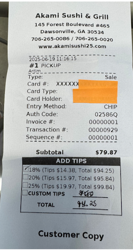 The waitress returned again without the bill or box, but instead asked if Iād like to sign up for a rewards card. I declined, but she insisted I didnāt understand and re-pitched the card. I agreed just to move things along. I placed my payment card on the table in anticipation of receiving the bill, but she took the card without showing me the total.
