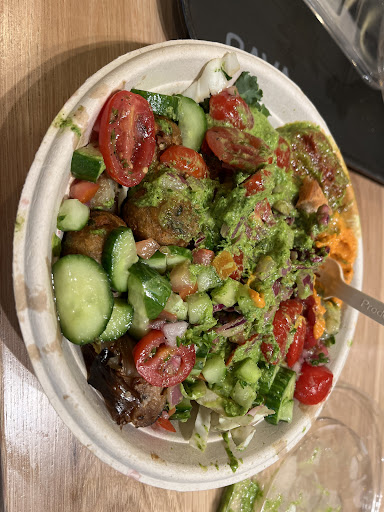Read moreNothing could have prepared me for the had me feeling like I was bouta Alright letâs just say, throughout this whole day I felt like Doctor Strange after getting eternally clapped by a celestial deity. Dying over and over again, each time coming back stronger with greater knowledge on how to not die more I guess. But the moment I stepped inside, the scent of slow-roasted lamb hit me like a golf club to my left ankle, instantly cleansing me of my past sins and childhood regrets. Consuming the holy elixir labeled âgarlic dressingâit felt like it was whispering sweet nothings directly into my brain stems. But just as I was reaching enlightenment, pure spiritual bliss, riding the high of a perfectly balanced bite, disaster struck. My bowl sat before me, vibrant and full of potential, yet incomplete, like my childhood dreams. A cold sweat formed on my supraorbital ridge. As I was clenching my mandible, I had realized that I was out of garlic dressing. Good thing this person named Emma gave me some more. And I reverted back to my elevated state consuming as much dressing as possible. By the time I left, I had ascended to a higher plane of existence, spiritually bonded with my food, and legally married to the 87 empty dressing containers Iâm now in possession of.