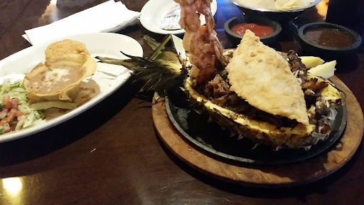 Ā Ā Ā Read moreI don't normally do reviews, however this place warranted one. First, the positives: The place was clean, my server was excellent, and the meat (other than the tilapia) in their "signature" fajitas, was solid. Now the bad... For starters, the chips tasted like fish. Tilapia, specifically. They serve Tilapia with just about every meal on the menu. Second, they brought out a roasted chipotle salsa. Well, the roasted chipotle peppers? They weren't roasted. They were burnt. The salsa tasted like the burnt pieces, scraped off the grill at the end of the night. Third: I ordered a small cheese dip. What I received was a SUPER-small cup (think of ordering an extra side of dressing at a normal restaurant), and was charged SIX DOLLARS ($6) for this!! Next, I ordered their signature "Hacienda Fajitas." It came in a pineapple. Personally? I think this is gimicky and dumb. But the worst part is, the charred green leafy portion of the top of the pineapple was burnt and charred, leaving a smelly burnt/charred taste from the smell of it. Last, as you'll see in my photo, the fajitas came with a large tilapia fillet on top of the fajitas. I'm still trying to figure out what it's doing there.... But like any adventuring restaurant goer, I gave it a try. That was the most disgusting, muddy tasting tilapia I've ever had. And I normally like tilapia.