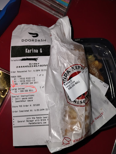 Immediately, I attempted to contact the restaurant multiple times to address the issue, but unfortunately, no one answered the phone. Determined to resolve the matter, I waited until my next visit to Panda Express, which happened to be yesterday. I took along photographic evidence of the incomplete order to share with the staff.