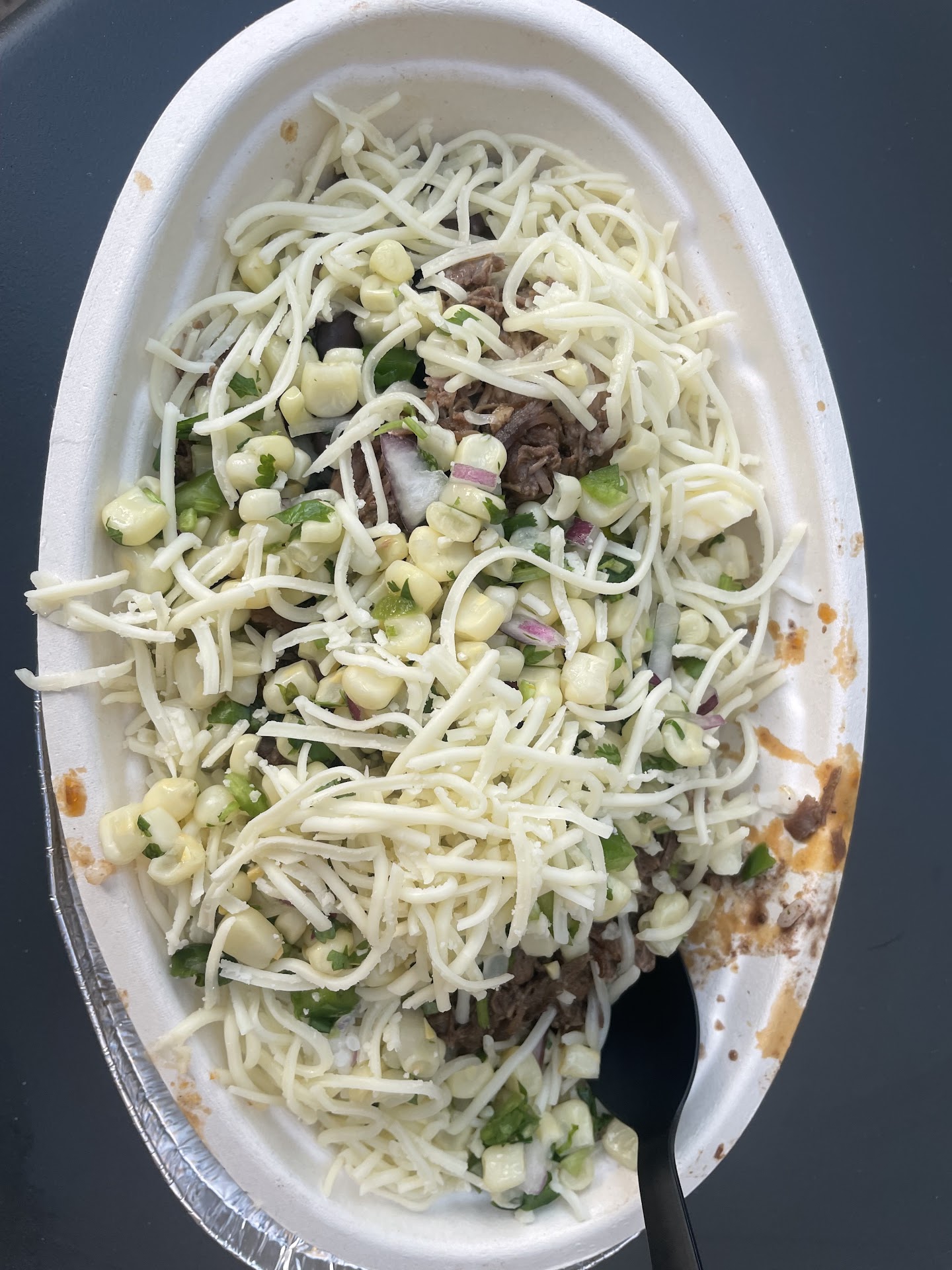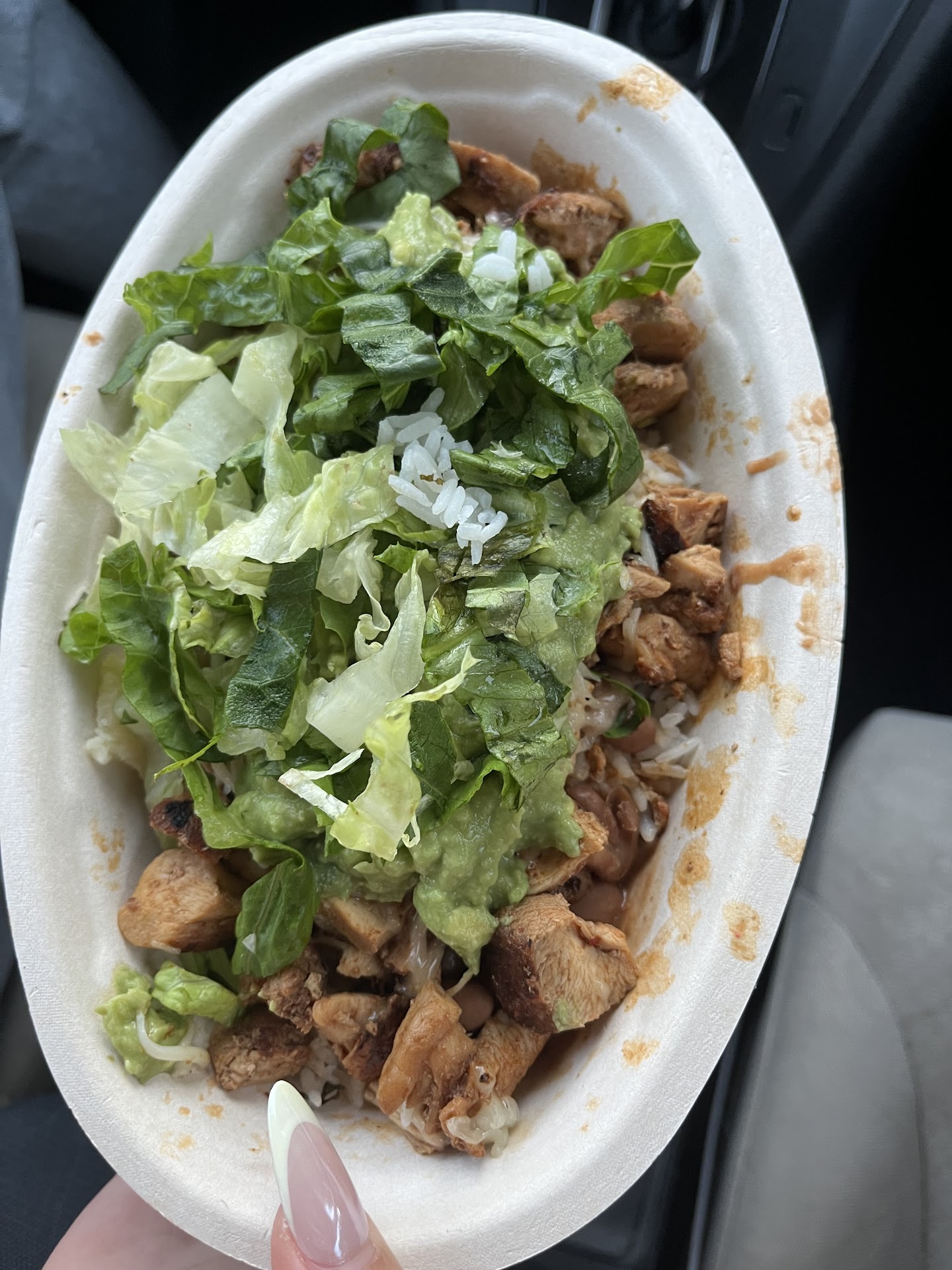 The food itself was very mid however. The barbacoa was tender, but it was insanely oily and the portions were disappointing. The flavor of the meat was overpowered by the oil which I hate and this oil makes you not feel good later on:(. The corn salsa I asked to come with my meal was also mid because while they gave me a lot of salsa the actual corn kernels weren’t sweet at all and had little to no flavor. My overall dish was very lackluster and not what I had heard about Chipotle.
