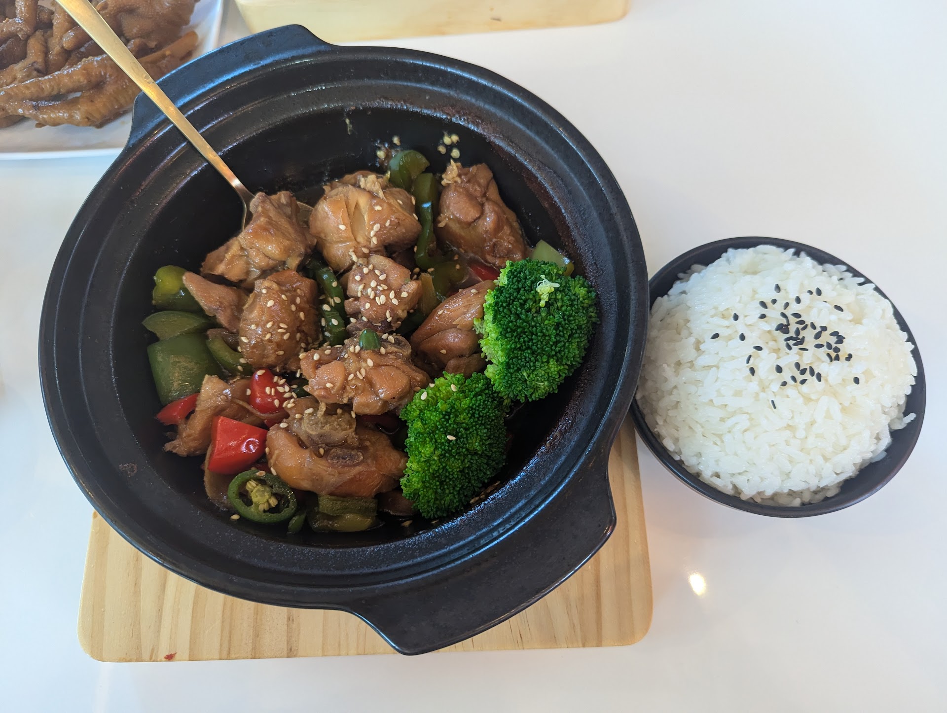Read moreWe got the yellow braised chicken (bone-in), spiced chicken feet, bone noodle soup, strawberry iced tea, and lychee iced tea and really enjoyed everything.