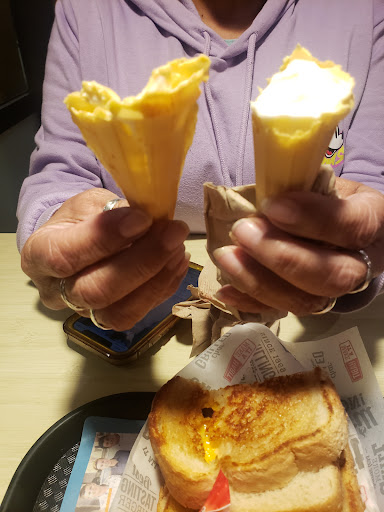 It was around 8:40pm. We went get ice cream cones. We ended up getting 2 ice cream cones, a kid's grilled cheese meal and onion rings. First, not being familiar with digital order menu, could not find ice cream cones. So after trying twice, we gave up and went to cashier to order. Tables were dirty. We went to 4 different tables and all were dirty. Not wiped off. Got some napkins and wiped the least dirty table that we actually sat at. We were called up to get cones. The ice cream was on softer side. The cone was like a small blob on the cone not spiral and pointy. I used to work with soft serve ice cream and it had no presentation value at all. It did not look like an ice cream cone should. Then when we got to the cone... it was so STALE. No crunch... tasted "aired" as if the cone had sat on counter for a while not covered. I told a blond lady worker who wore a red button up blouse... not the typical Habit tshirt. She looked at me, as if I was crazy. She did not offer to replace the cone. She looked at me as if she a deer in headlights. I suggested that maybe she should change them out and again... she just looked at me. Maybe if she wasn't looking at her phone so much, then she can do what needed to be done. Then we got called up to get the kid's meal and onion rings. Fries were luke warm. Onion rings lukewarm and not crispy or crunchy. Grilled cheese was warmer. So overall, we spent $16 for melty ice cream in an aired, stale tasting cone, cold fries and old, soft onion rings. Needless to say, this Habit location needs some looking into. Very disappointing, as we love the Habit... not so much...