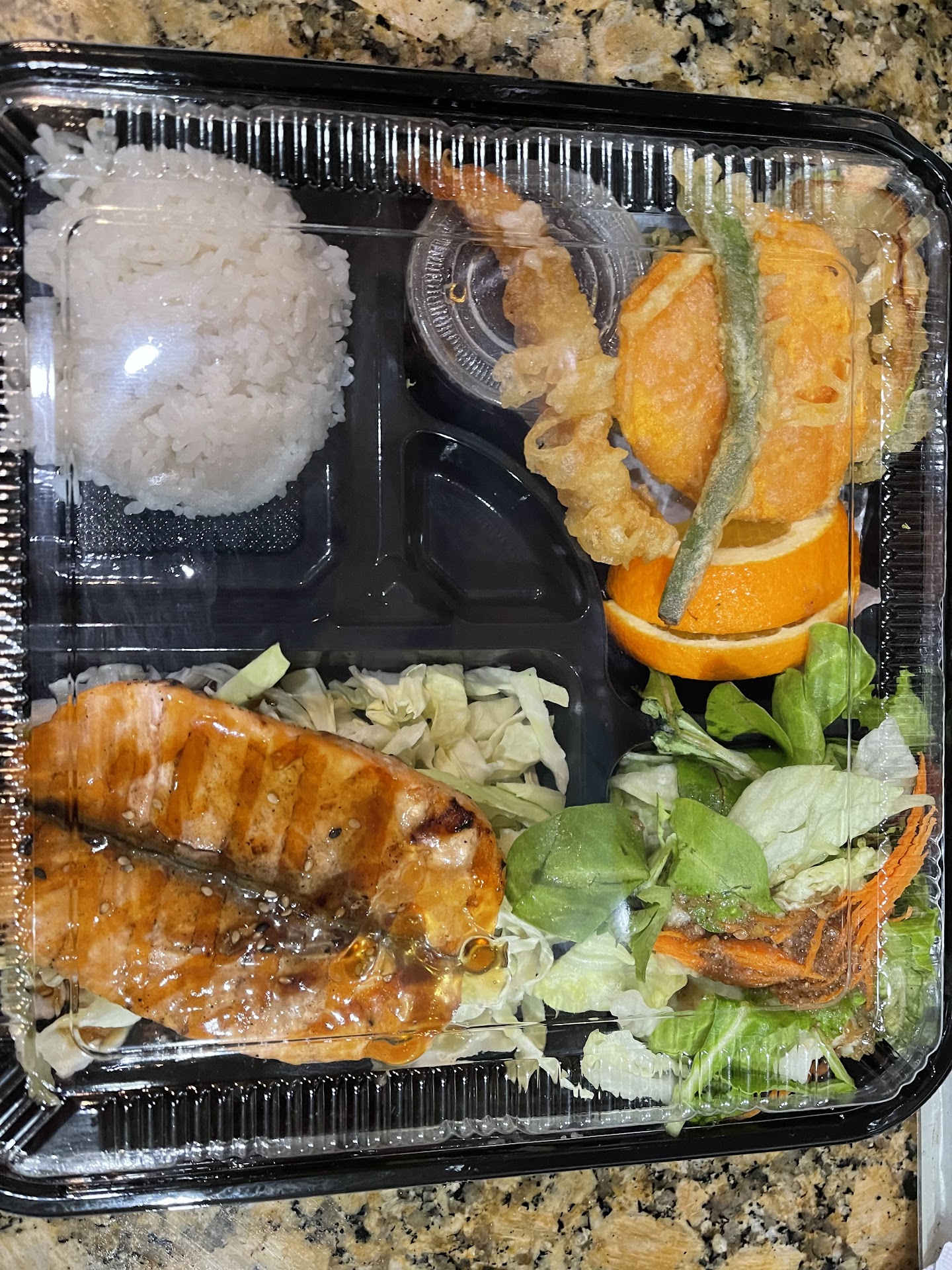 Read moreI ordered 2 Bento one is teriyaki salmon and one is teriyaki beef, added $2mix for sashimi for each Bento, each order is $20.99 used to be $13.99 plus add sushi a for $1.5 and the food was much better . Inside the Bento box every item is much smaller than before , no sushi roll at all, the salted ginger on side smells like antiseptic can not eat, wasabi just given little, salads dressing is almost non have to add whatever I have from home. Tempura are very soggy and old oil smell. No soup No Edamame!