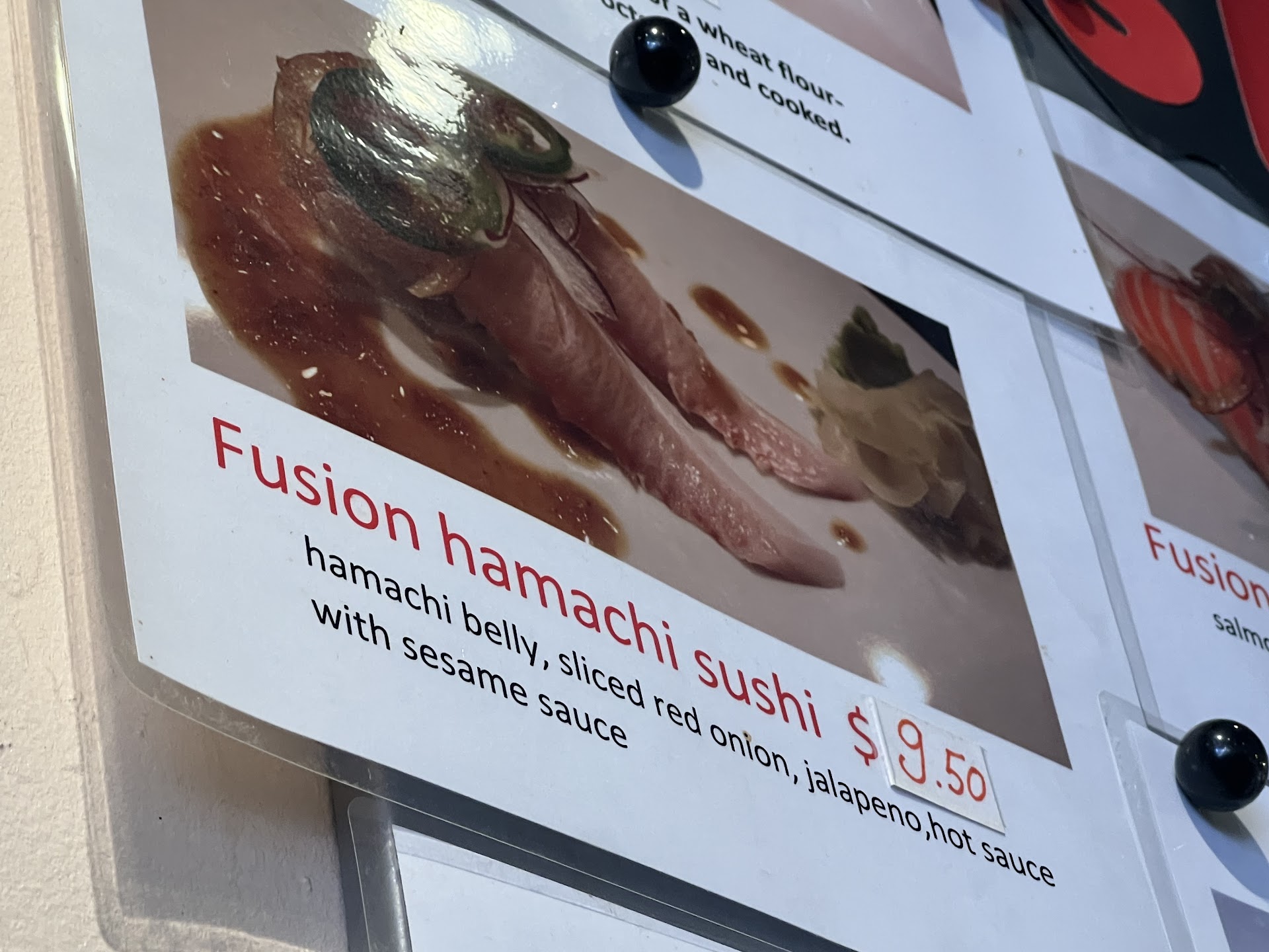 Sushi rice was hard and flavorless. Yellowtail was ok but not great. Either the uncured salmon was salted or they gave us smoked salmon that had no smoke flavor/aroma. Maguro was so fishy I couldn't even swallow it.