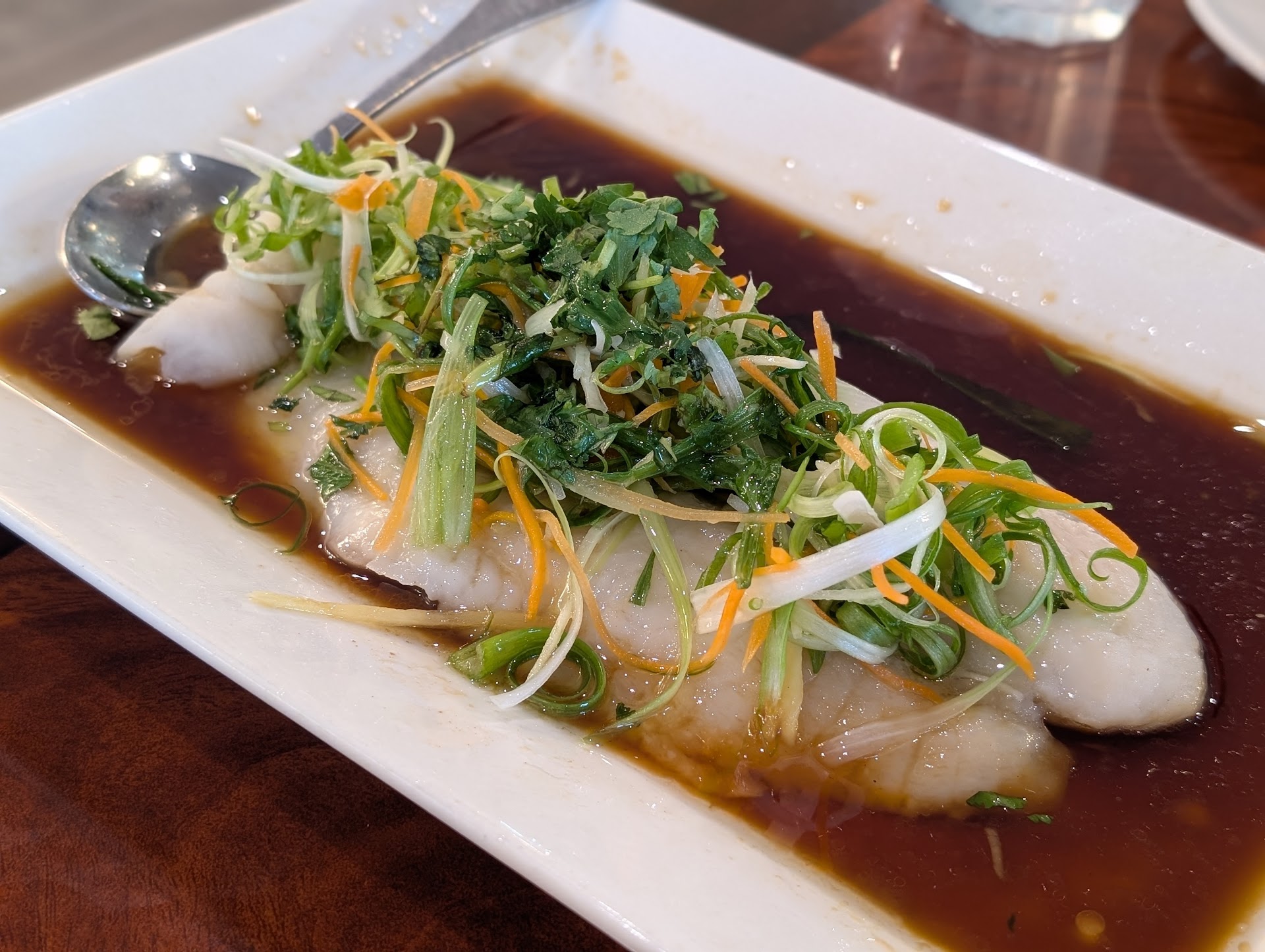 The steamed sole fish (filet) is surprisingly good. Worth a try if you haven't ordered this before, and no fish bones!