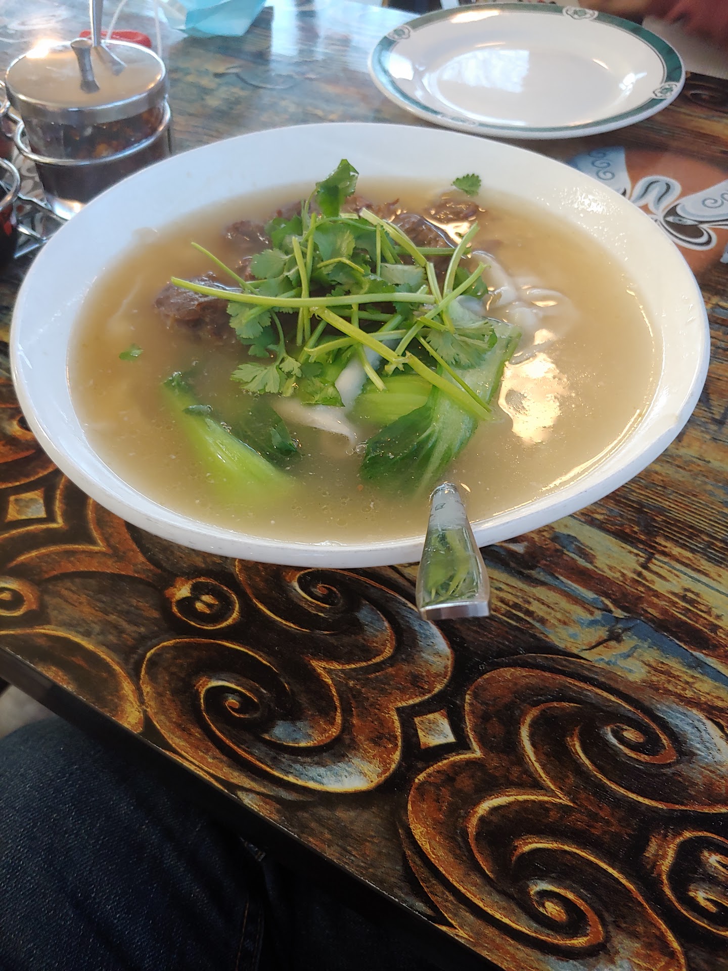 The owner was also impatient to our questions. When we asked if the steamed fish is very fresh, he answered NO. He said the fresh fish cost him $60 per pound to buy. I have been in many Chinese restaurants numerous times and frequently have fresh steamed fish. But I have never heard it costs restaurant that much to purchase the fresh fish. Our first order was lamb soup. When it was brought to our table, the soup was splashed outside bowl and some was is the plate under the bowl. It looked dirty which made me wonder the condition of their kitchen. The lamb was hard to chew for some reason. When we told the owner about this, his reaction was: “That’s impossible, our lamb is the best.” I was wondering how much he paid for the lamb in consideration of his hyperbole about fresh fish. Only when he noticed that we left complete lamb order on the table when we were ready to leave, he started to believe our comment on lamb.