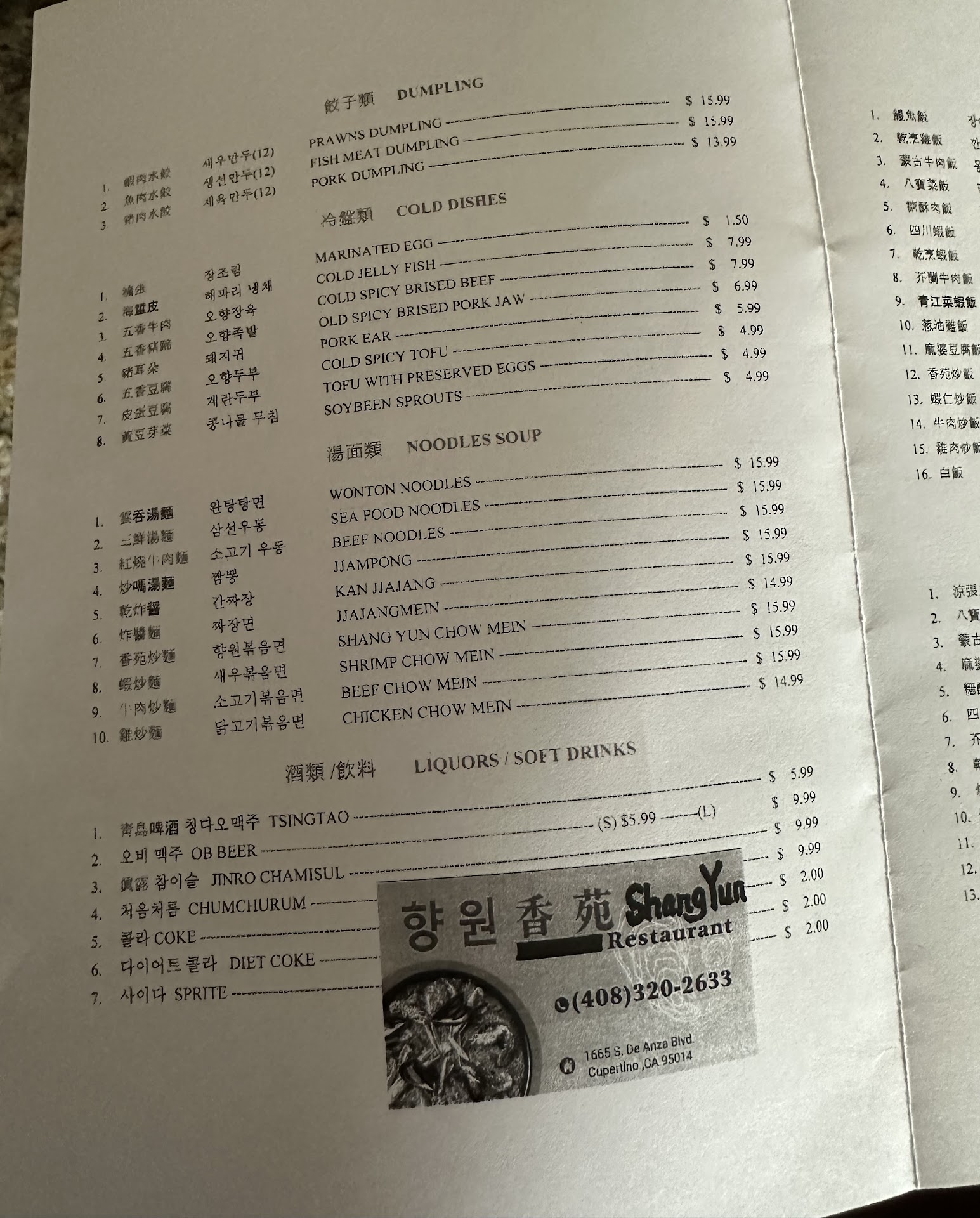 Read moreThis restaurant has both Korean and Chinese dishes. It no longer has sushi or any Japanese dishes. The food was fine. There are a few signature dishes that I can imagine people coming back for, as they are hard to find at other restaurants. But if you're not coming for one of those, the food is fine but nothing to write home about.