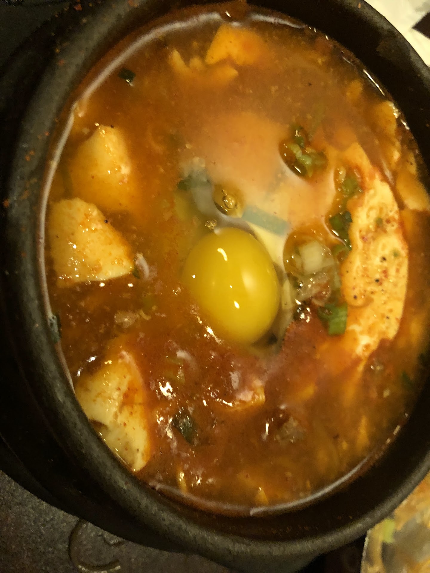 Maybe we did not know which dishes to pick. I was not hungry but Dad want to try ( I think he had this place before). He like the Green Onion Pancake. Even tho it was pretty good, I was worried Dad ordered the large for $ 27? but he ordered the small which was only $ 18 ? I believe. It is kind of expensive for Pancake but it was good but i prefer Chinese pancake as Korean had other things in it ( not only Green Onion). The Tofu Stew were not very good. Since Dad order seafood, I thought it would be good but the soup taste like Instant noodle packet. Just not very good for 20.99. Dad should have tried the Ramen ( with seafood, only $ 18.99? The thing that was very good were the free side dishes. The free side dishes were delicious ( KimChi, bean sprout, dried tofu & regular tofu too, Glass Noodle, delicious, & seaweed). I would say the free side dishes are delicious here, Im just not sure the Tofu stew is good. The table beside us order some type of Pure Beef. It look really good. I notice later that the Beef dishes ( Ribeye & also Ribs) were mostly 30 dollars ( or around 30 dollars) which i guess is good deal. But there is one Beef dish that is 67 dollars ( I believe it is braised so that is why that one Beef dish cost more). They also had some type of Fried Chicken Appetizer for $ 27. I just dont recommend the Tofu Stew. The thing I did not like is nobody greeted us. I am patient, but my Dad is not. Since nobody greet us, we choose a table. Then a lady come out and tried to force us to to sit immediate next to window. We did not want hot sun ( so we insist to sit one table away from hot sun). I notice other customers later pull down the shade. They should prepare with shade if they expect you to sit next to hot sun. I do understand hostess is only try to do her job, but if we are the first customer, you should just let us sit away from the sun. I almost told Dad that we should just go to Gyu which is an attractive japanese nearby or just go to the noodle soup place which might be more expensive but at least better food. Oh, and where the lady wanted us to sit all the tables ( for two are very close to one another making atmosphere a little crowded). The only good thing is they dont force you to tip 18percent like most Chinese. They give you option to...