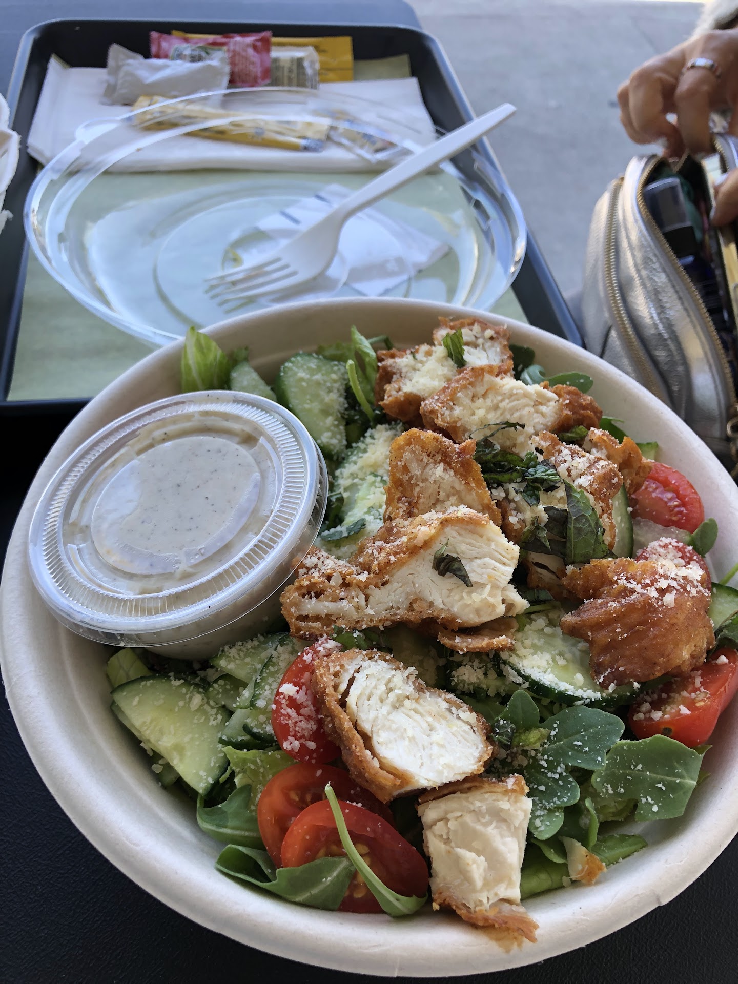 Next about the place itself - with no indoor dining option, the inside is huge and empty with plenty of place for social distancing. They have self-order iPad kiosks to one side as well to order while you are there as well. There was a gender neutral washroom at one end which was very distant ( good) from the place of pickup. And yes, there was "now-being-served" screen to the right of the entry which you can look at and go to the pick up counter when you read your name. Pretty slick, I should say.