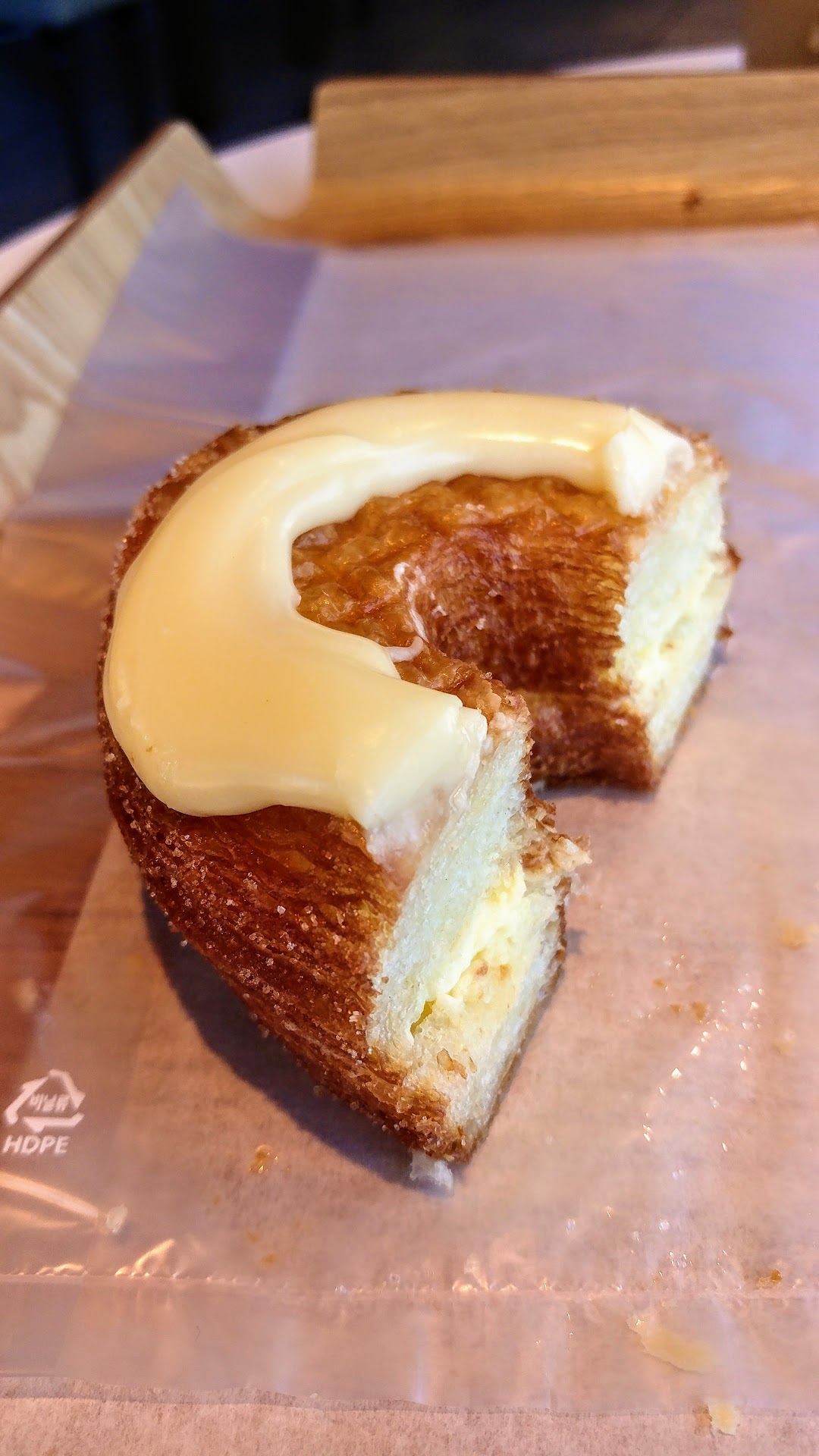 I enjoyed my green tea chiffon cake and green tea latte at a table inside. There is a long communal table in the middle, with tables flanking both sides of the bakery. It's very clean and very bright. The chiffon cake was perfectly moist.