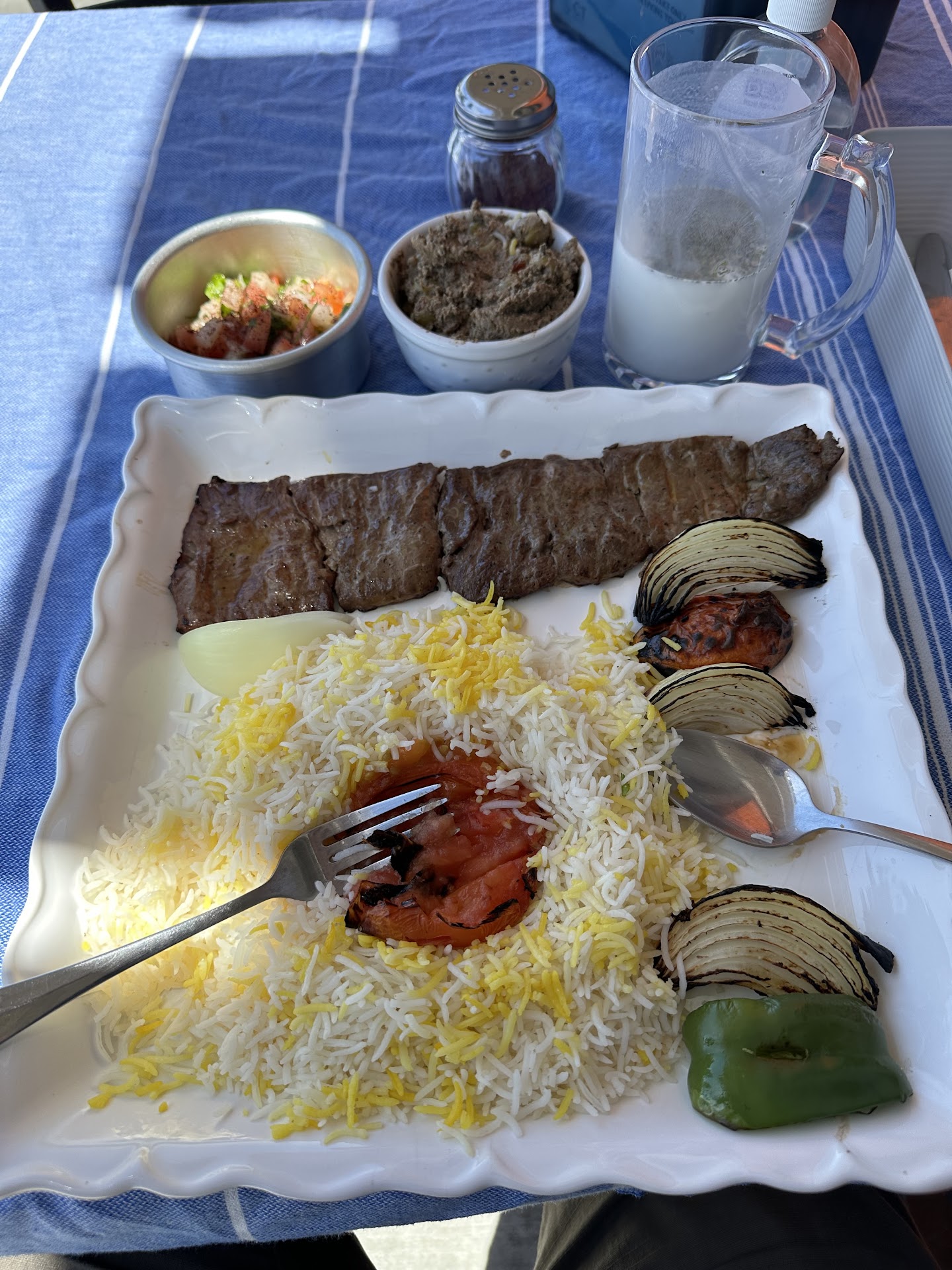 I ended up getting an order of their barg kebabs, while my friend went with their koobideh, each of us adding on two roasted tomatoes on the side. While the flavor wasn't bad, and could have been easily made better with the yogurt or other sides they had on sale, the texture was, unfortunately, a little too dry and tough.